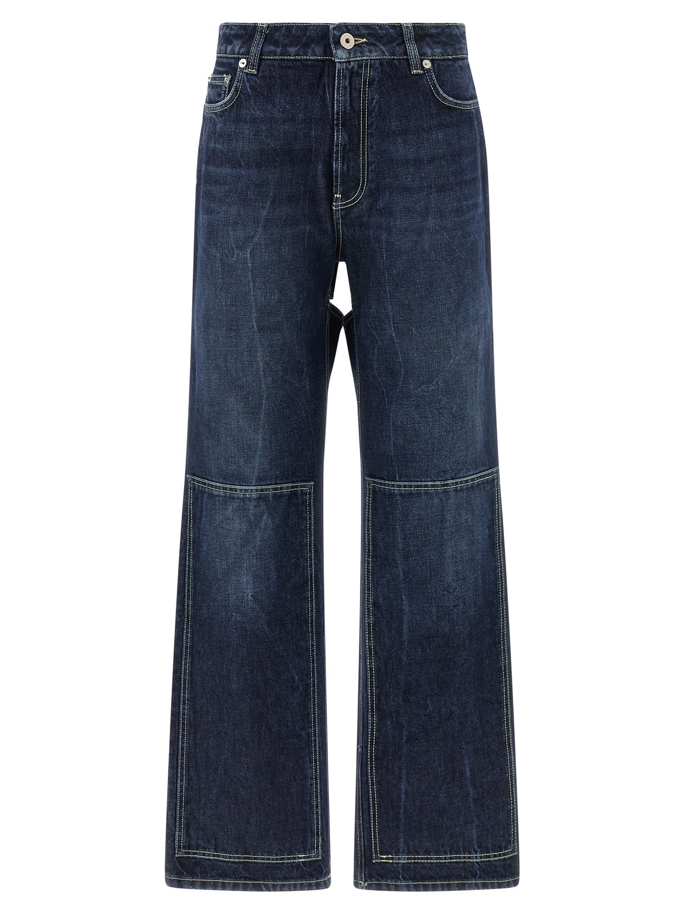 The Blue Cut-Out' stone-washed cotton denim jeans with contrast stitching, extra wide leg with back cut-out and front tone-on-tone patch, zip and button closure, five pockets, and leather logo label at the back.