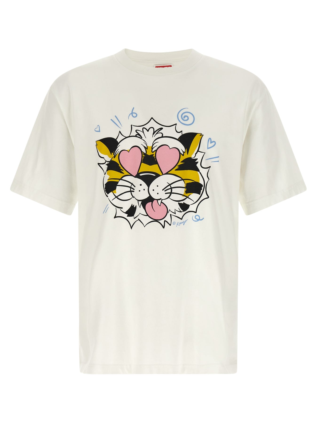 'Wild Tiger' cotton crew neck t-shirt with front and back print, short sleeves.