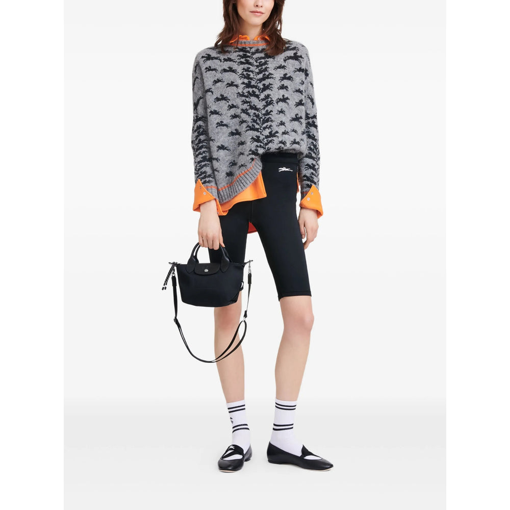 black logo trim silver-tone hardware circular top handles adjustable detachable shoulder strap foldover top top zip fastening main compartment