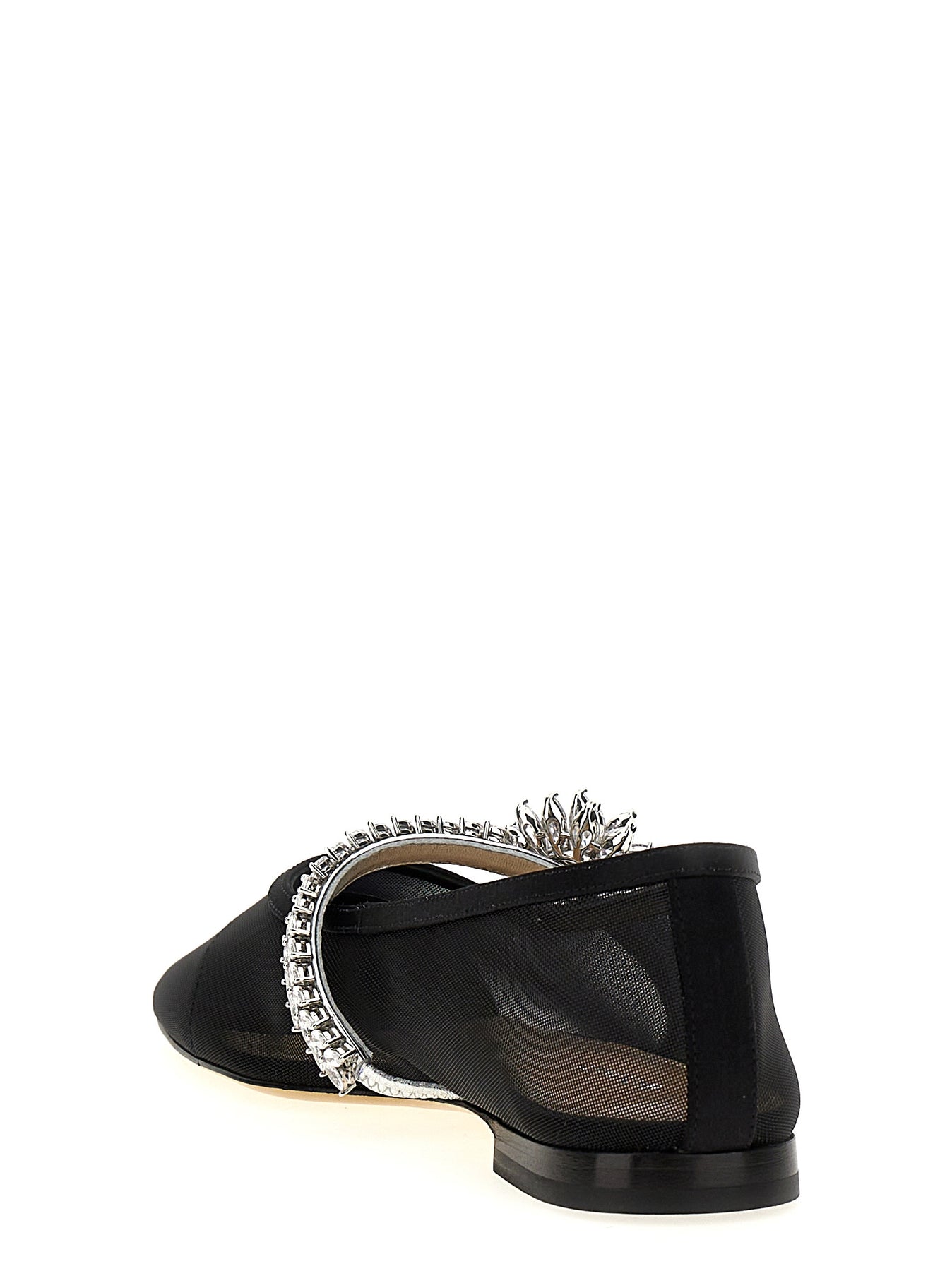 'Lotus' ballet flats in semi-transparent mesh, strap with crystal application, leather insole.