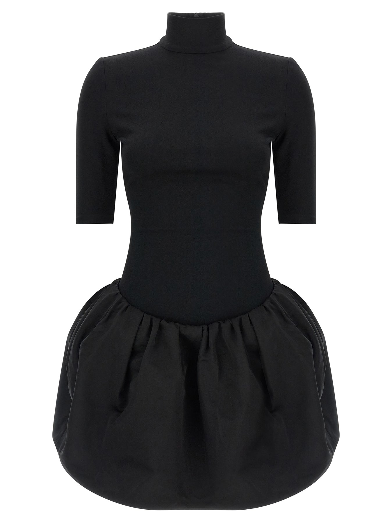 Mini '08' dress in cotton and viscose blend, high neck, back zip and button closure, 3/4 sleeves, silk balloon skirt with tulle inner support.