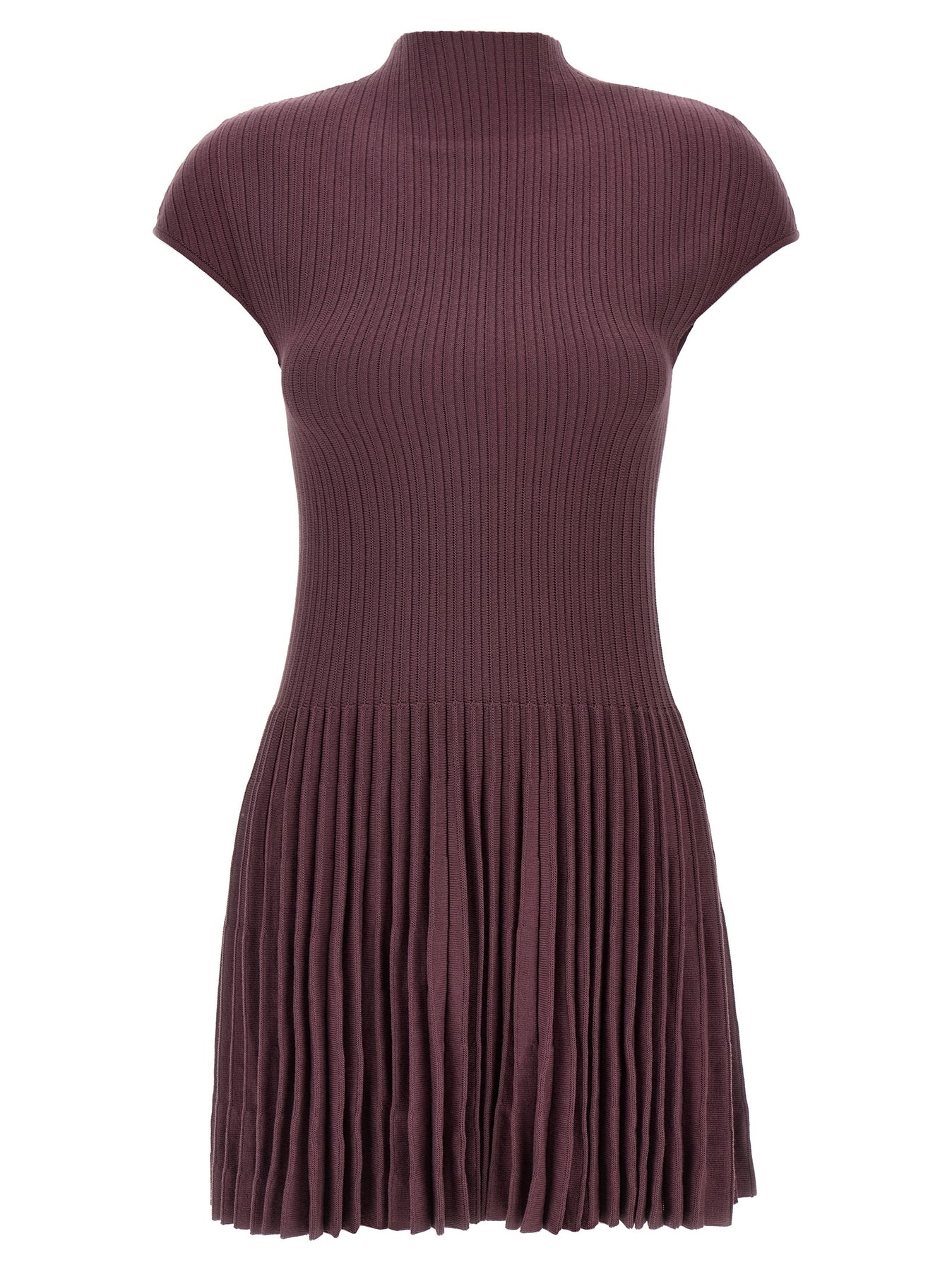 '12' knitted cotton mini dress, pleated skirt, high neck, short sleeves.