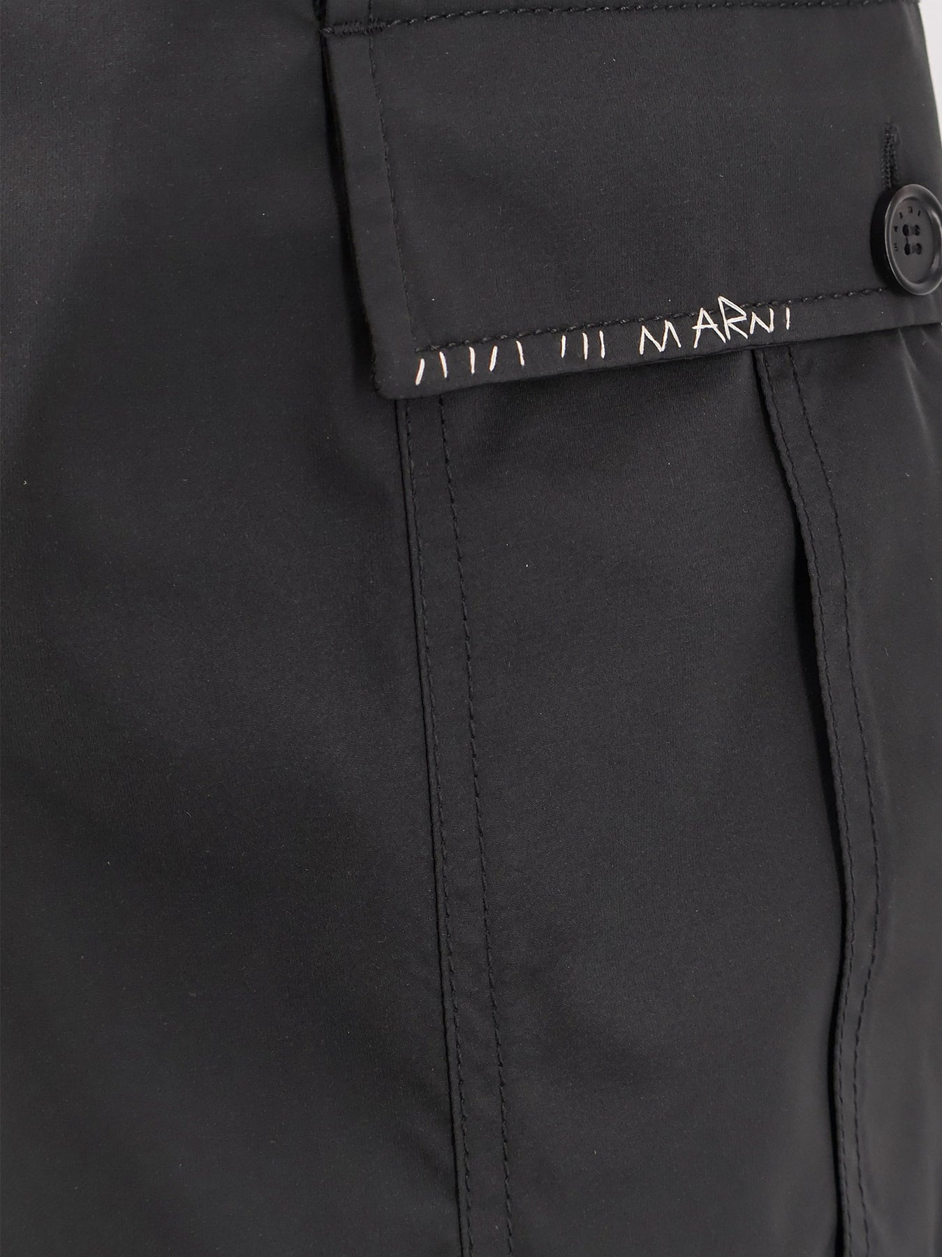 Button and zip closure with adjustable internal drawstring Side welt pockets with flap and button Large side pockets with flap and button One welt pocket and one back pocket with flap and button 67% recycled polyester, 33% cotton SKU: PUMU0247S0UTP789_00N99
