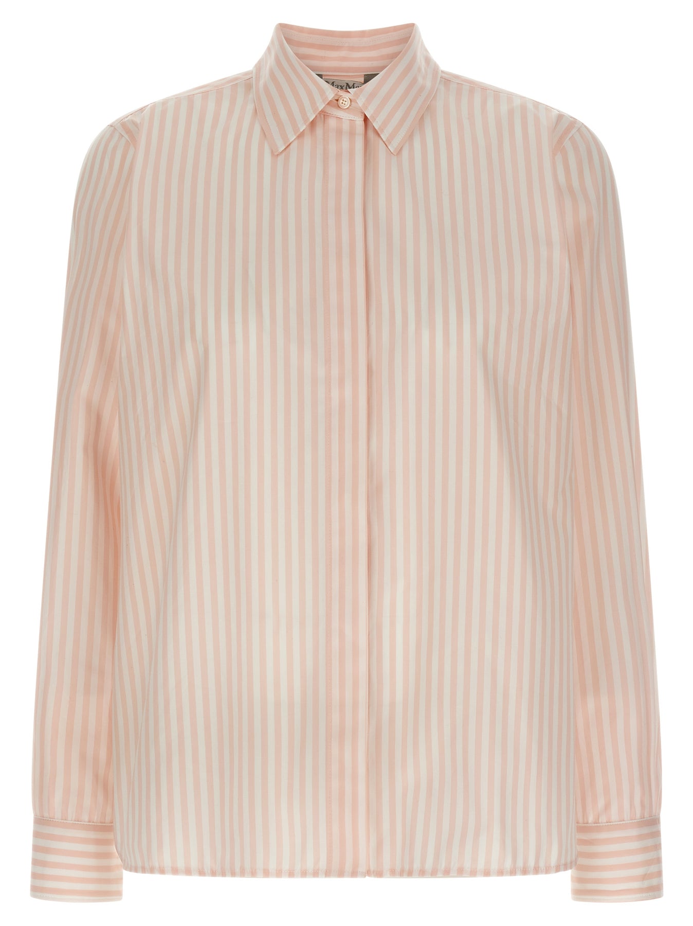 'MxmMaccenni' striped cotton poplin shirt with concealed front button closure, long cuffed sleeves and metal logo appliqué, rounded hem with side slits.