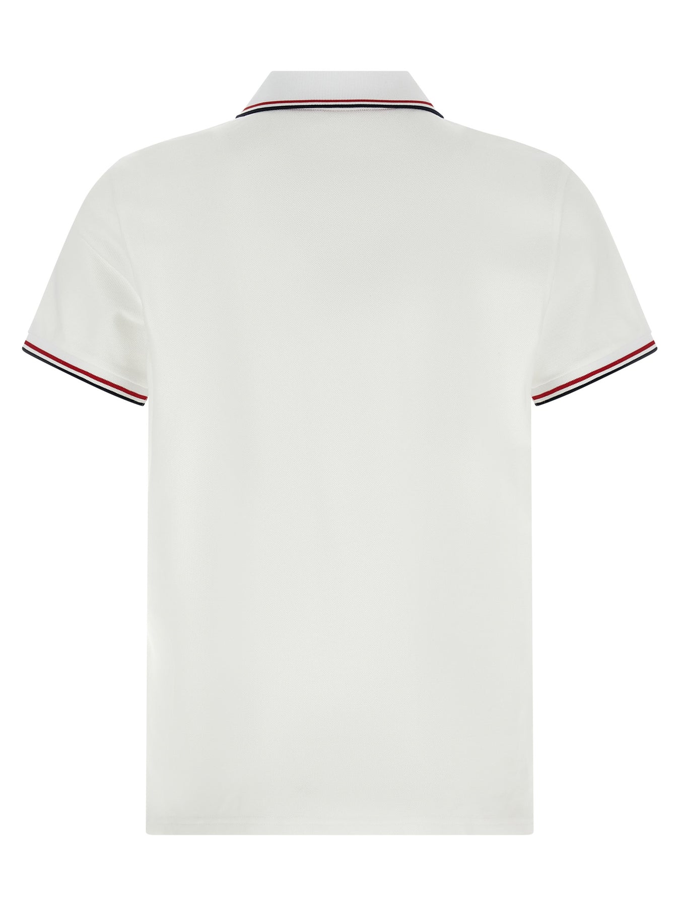 Piqué cotton polo shirt with contrast details, front felt logo patch, collar and buttons, short sleeves, side slits.