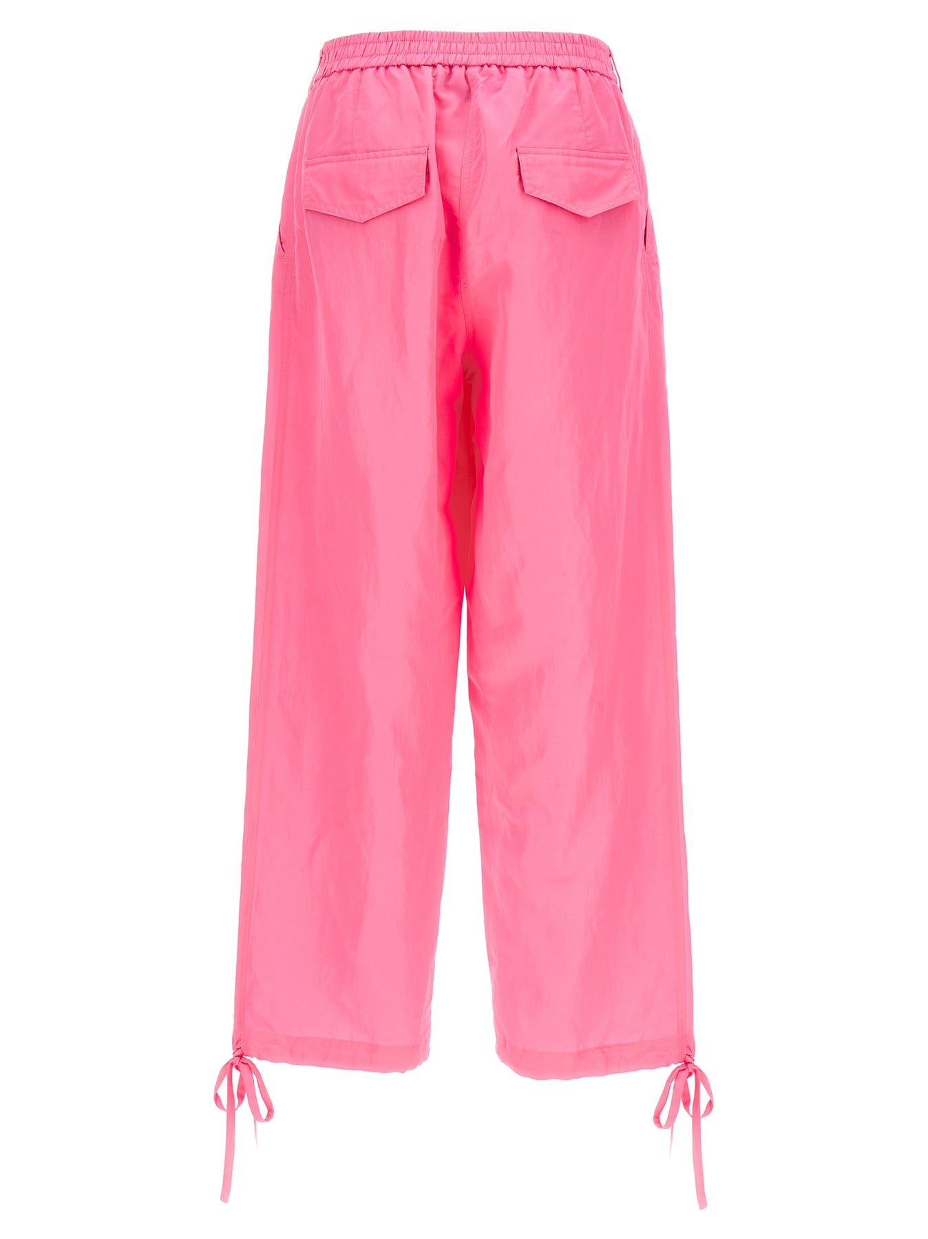 Viscose and linen pants with carrot style, with hook-and-eye zip and button closure, pockets and adjustable drawstring on the leg bottom.