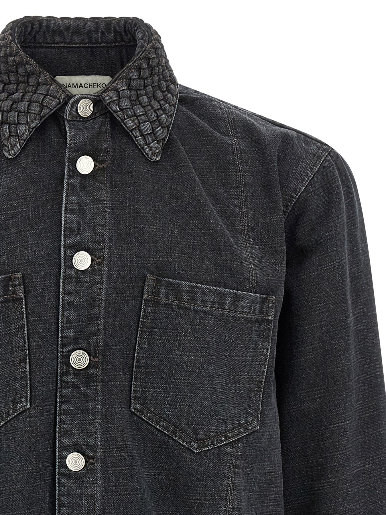 'Gervis Braided' denim shirt made of flamed yarn woven like a canvas and stone washed with streaked effect, braided collar, pockets, front button closure, long sleeves with cuffs and dropped shoulder.