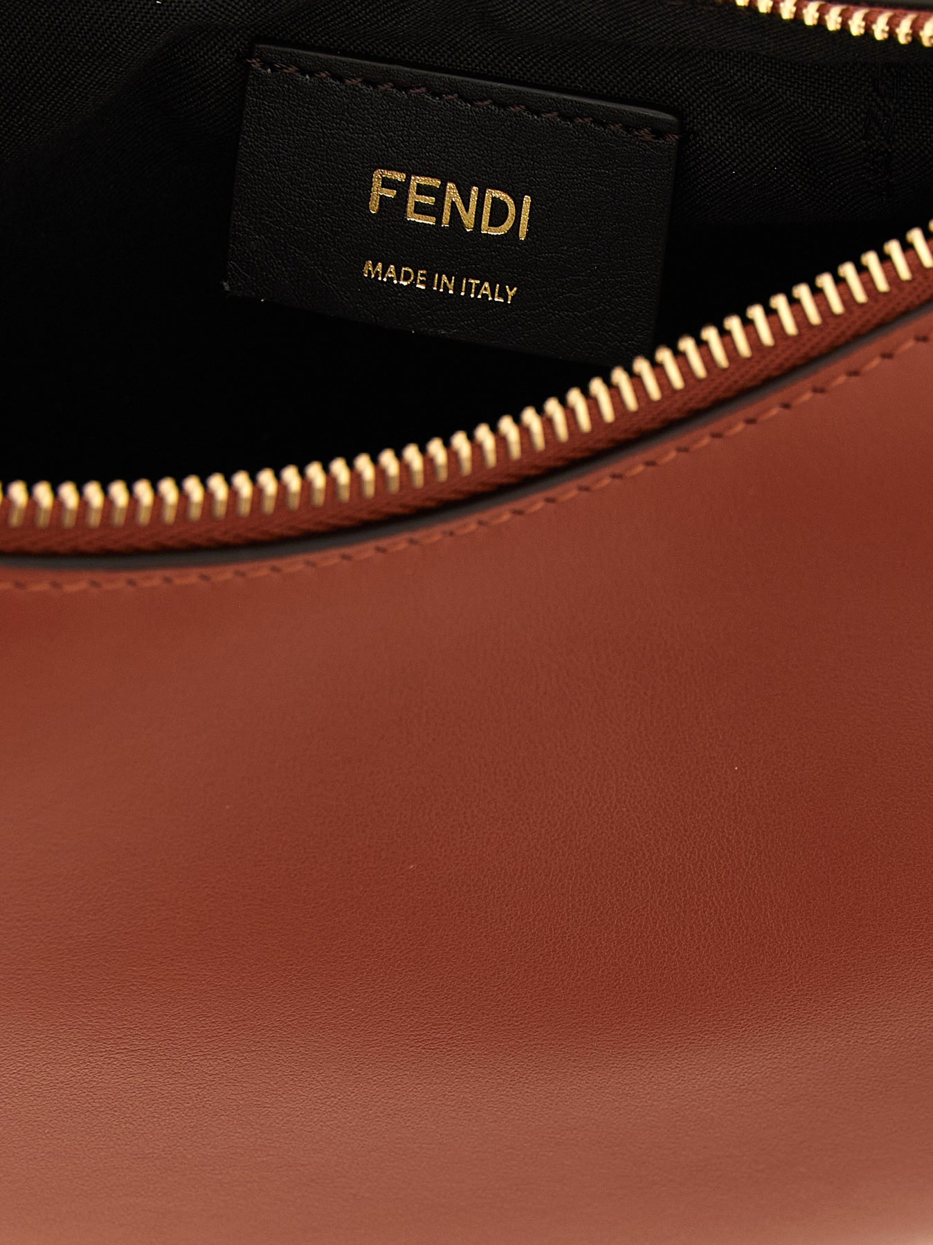 'Fendigraphy' mini handbag in calf leather, antiqued effect metal lettering logo on the bottom of the bag, top zip closure, hook and snap hook to be used as a handle, adjustable and removable shoulder strap.