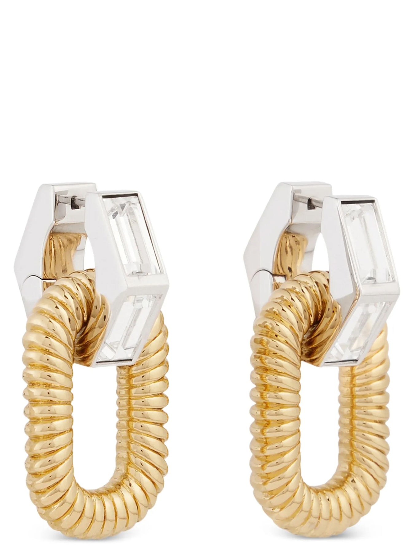 'XL Link' earrings composed of a silver rhinestone mesh woven with a textured gold mesh, butterfly closure. Removable golden part. ITEM CANNOT BE RETURNED