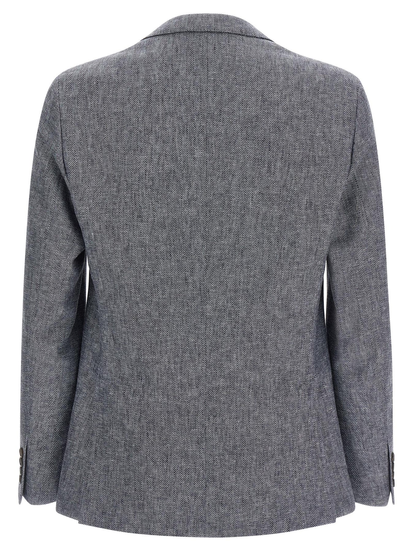 'Brera' single-breasted blazer in linen blend with chevron pattern, front button closure, mirror lapels with removable metal pin, breast pocket, patch pockets, unlined, three inner pockets, cuffs with opening buttonholes, back vents.