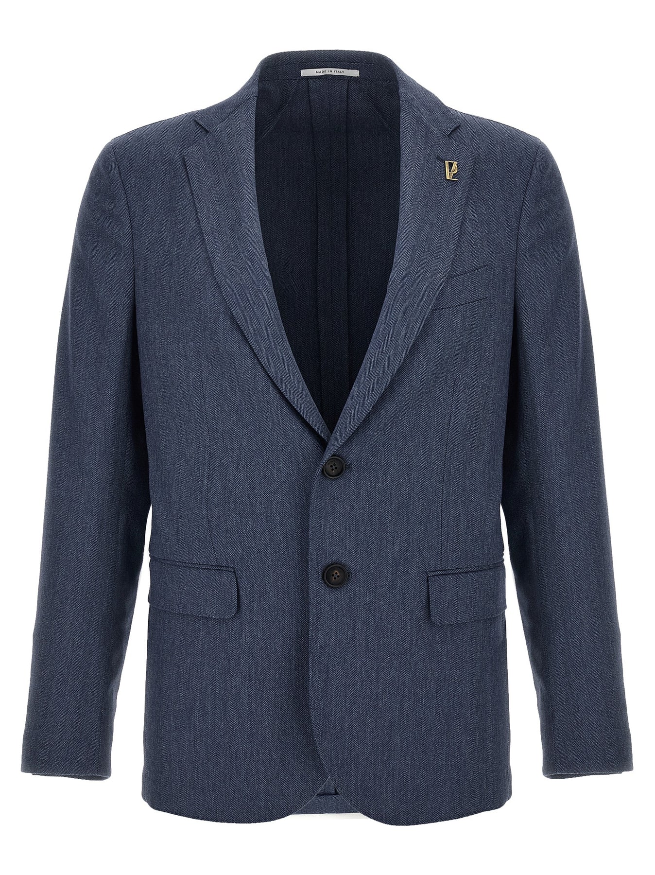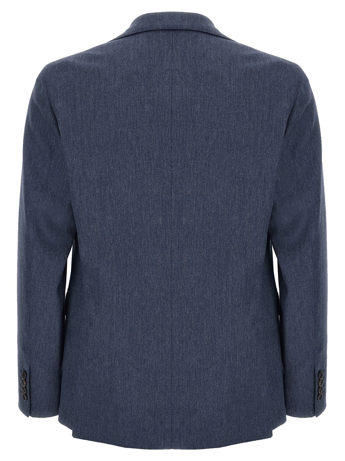 'Brera' single-breasted blazer in herringbone wool with front button closure, peak lapels with removable metal brooch, breast pocket, patch pockets, two inner pockets, cuffs with opening buttonholes, back vents.