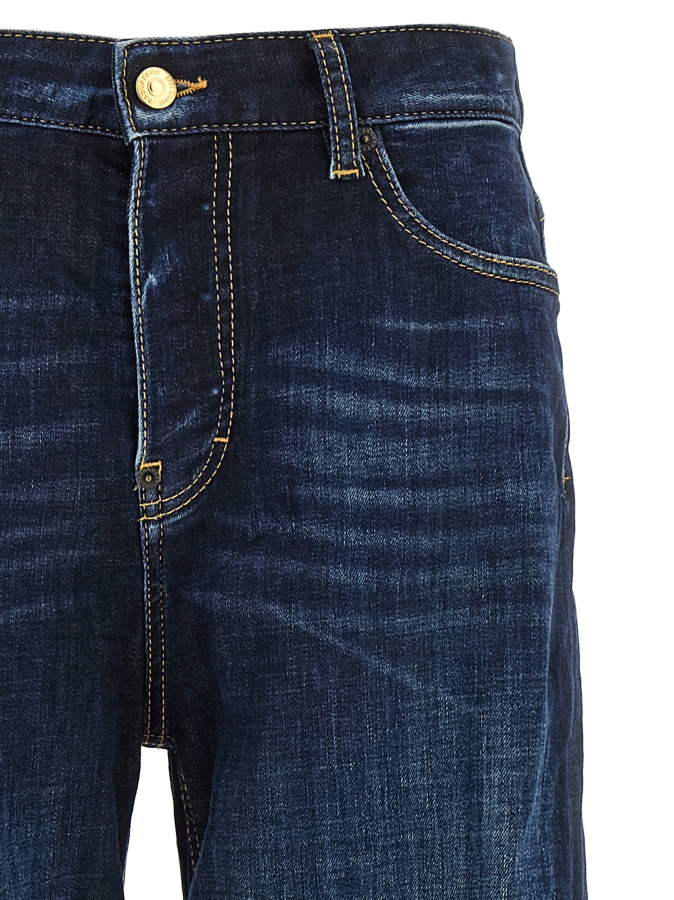 'D2 Twisted' stonewashed cotton denim jeans with twisted leg silhouette, front button closure, five pockets.