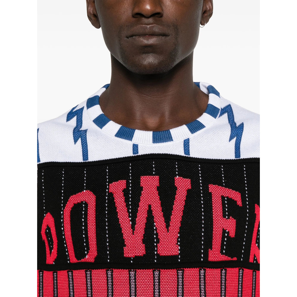 white sleeveless design red panel blue panel black panel lightning-bolt pattern