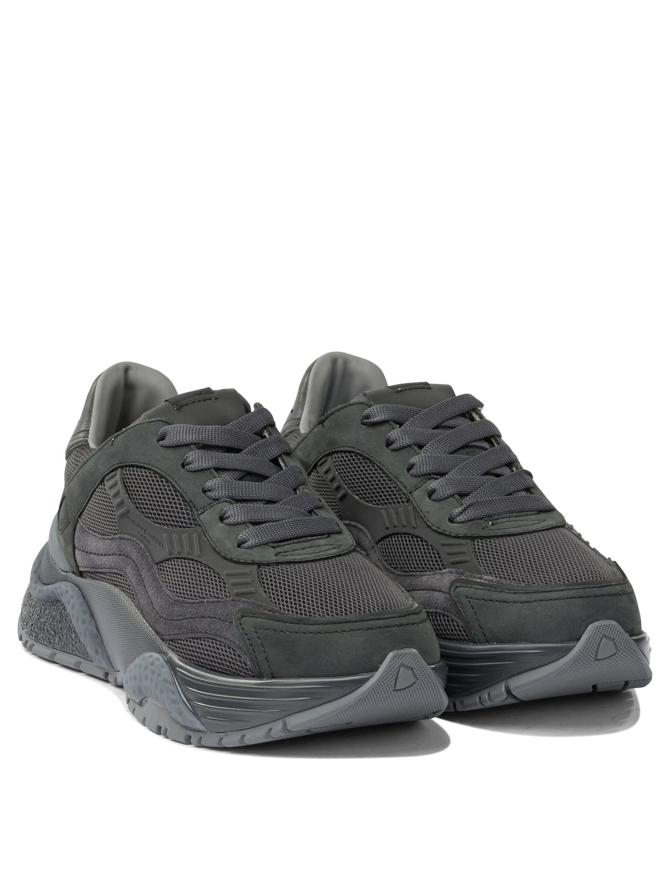 Philippe Model Paris "Odeon" sneaker constructed with suede upper and padded technical fabric. The model features a running silhouette characterized by a high-frequency machined shield on the heel and low structure. Textured rubber platform sole. Padded and removable insole, inner lining made of cotton terry to promote breathability and provide prolonged comfort. || - Suede upper, padded technical fabric and embroidered details - Rubber platform sole - Padded and removable insole - Breathable cotton terry lining - High-frequency machined heel shield - Low-profile running structure