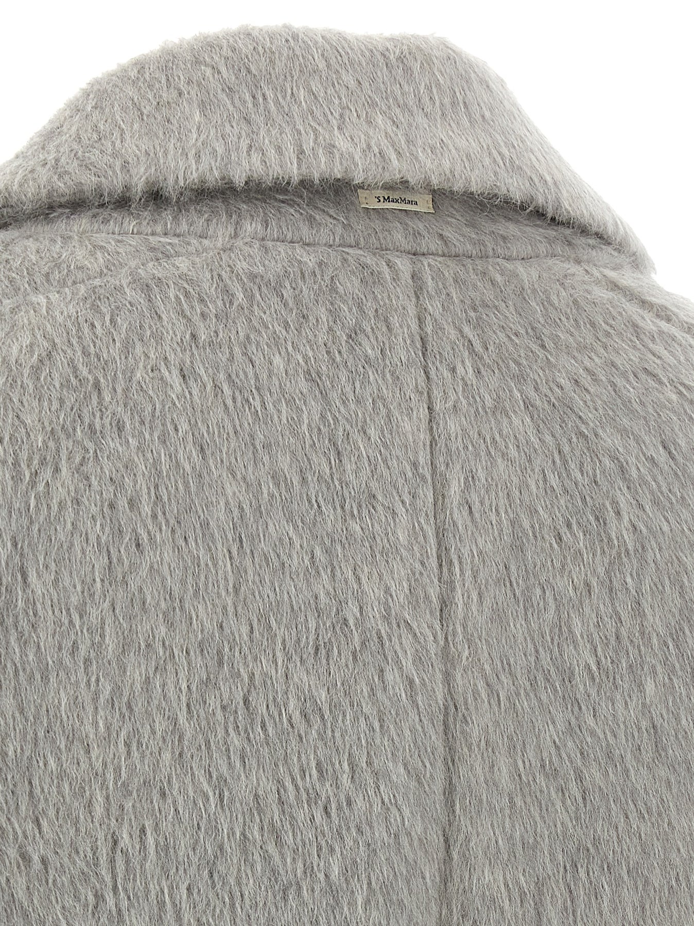 Long 'Giorgia' wool, alpaca and cachemire long-haired coat, deconstructed double-breasted style with front snap button closure, lapel collar, pockets, long kimono sleeves, back split, cupro blend lining.