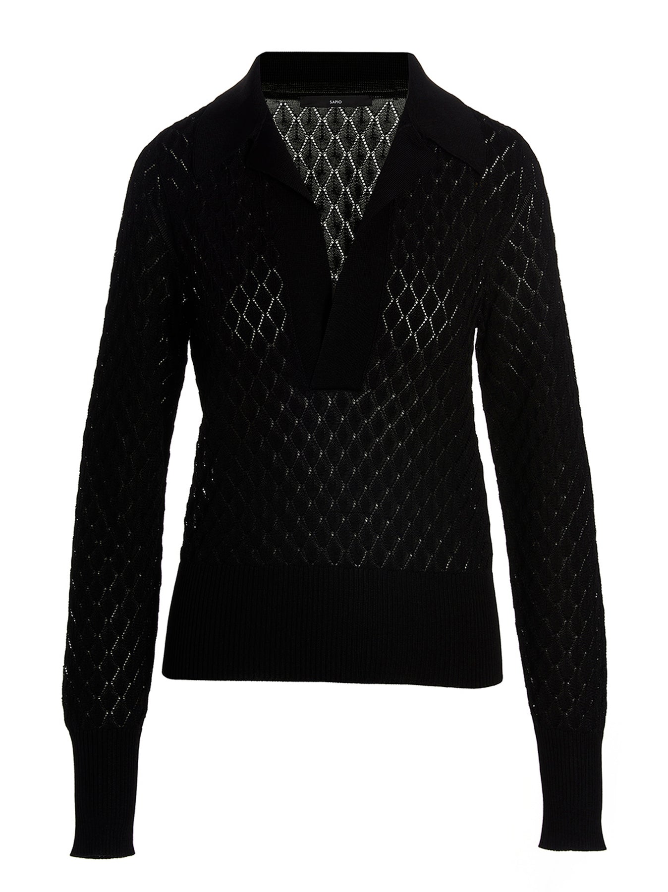 Viscose knit polo shirt with buttonless polo collar and a V-neck