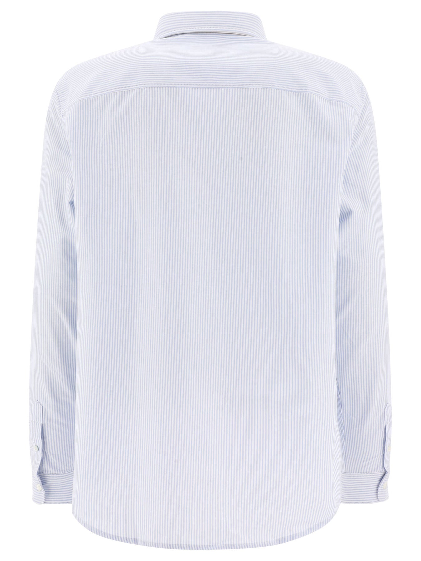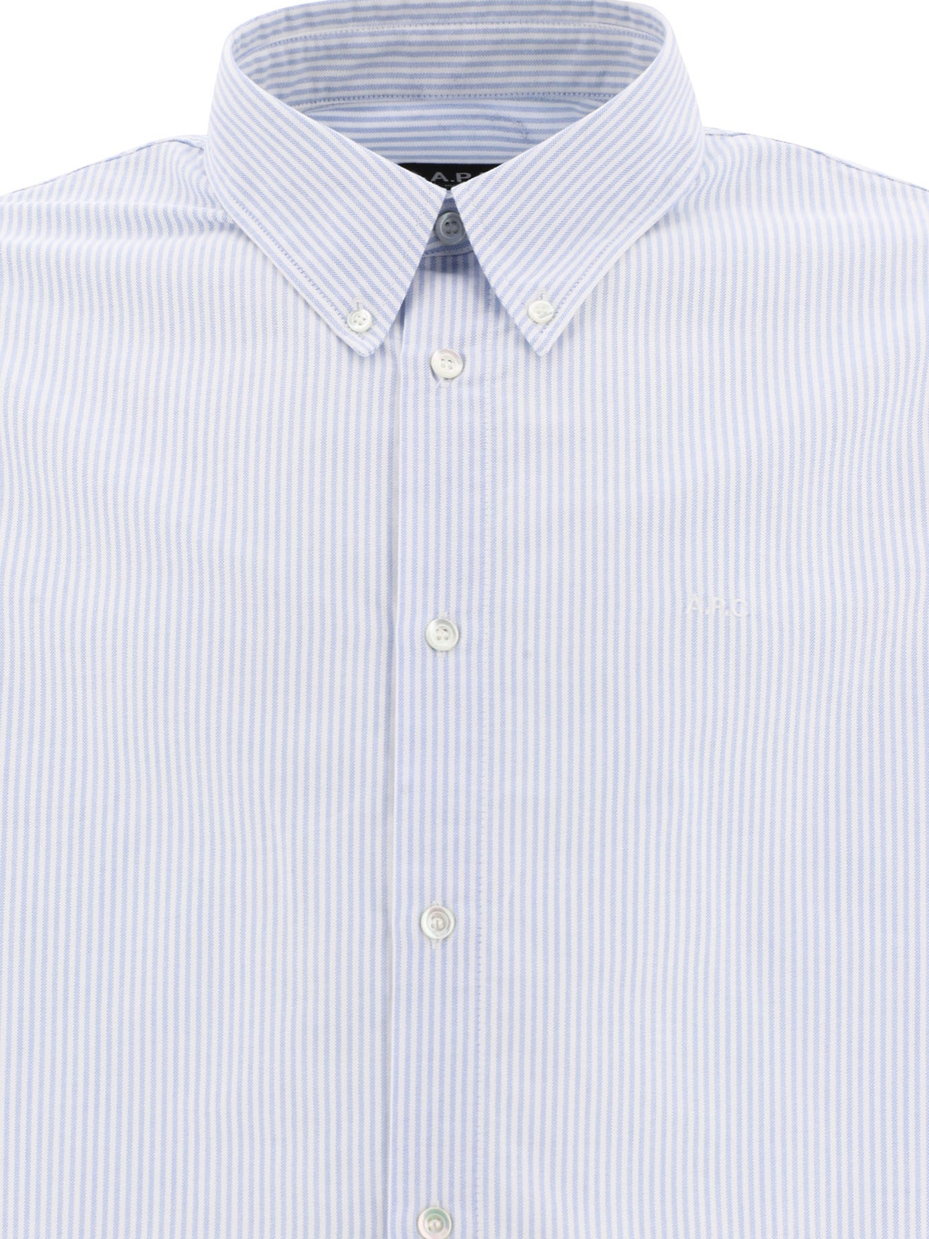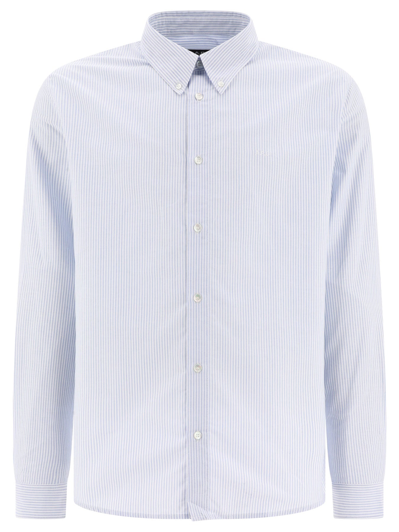 A.P.C. organic cotton "Greg" shirt, made with a striped fabric and straight-cut construction. The garment features a silhouette with slightly sloping shoulders, button-down collar with button closure and tone-on-tone A.P.C. logo embroidered on the heart. The fabric surface follows a compact structure, featuring natural materials and regular trim on the edges. || - Striped - Button-down collar - Long sleeves - Straight cut - Slightly sloped shoulders - Tone-on-tone logo embroidered on the heart - Organic cotton - Regular fit
