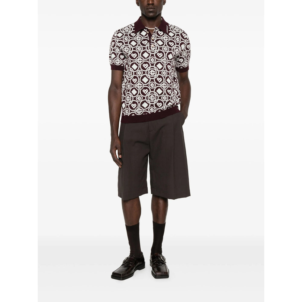 burgundy monogram pattern button fastening short sleeves collared