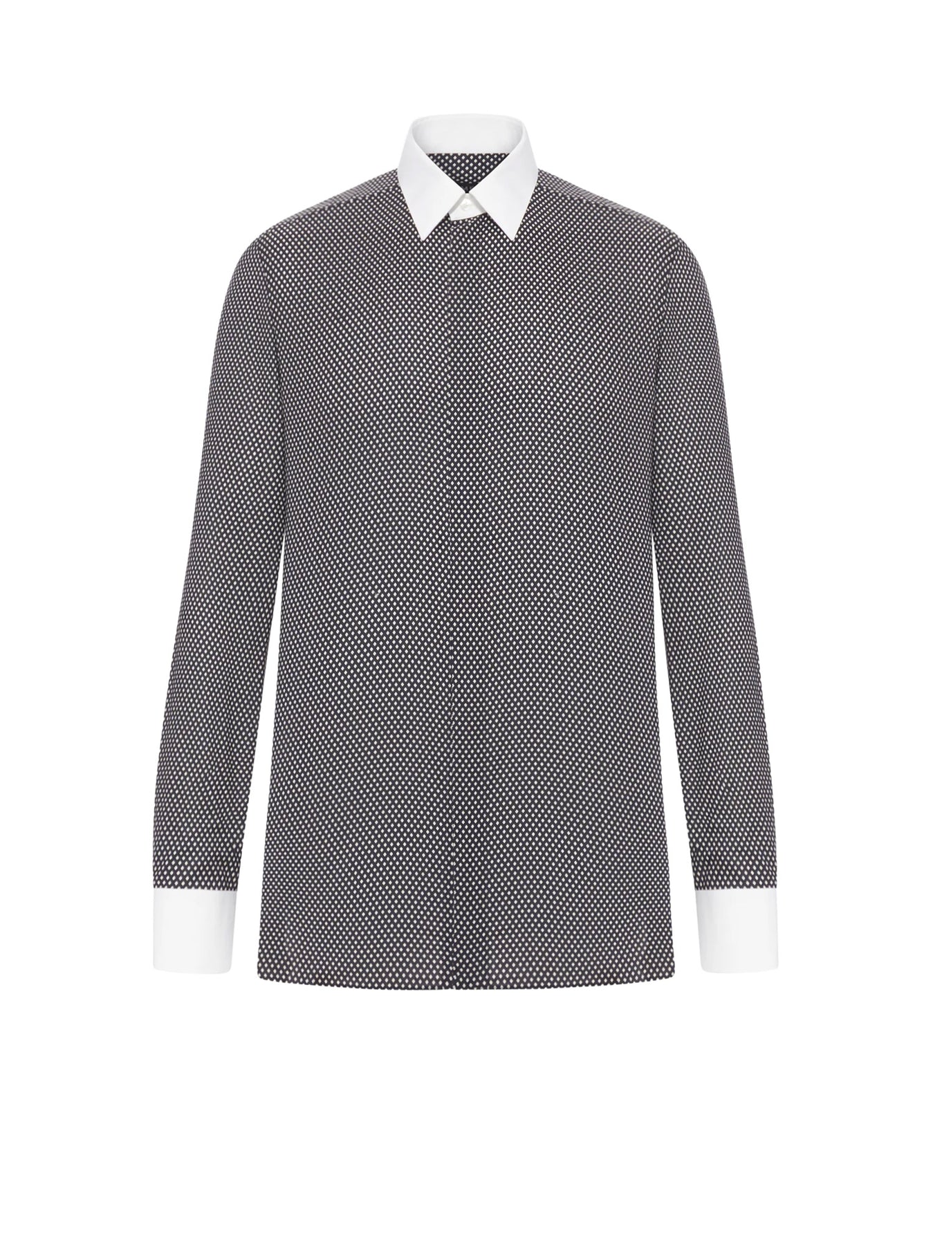 Hidden button closure and pointed collar Long sleeves with buttoned cuffs Contrasting profiles Classic fit 100% cotton SKU: HLVA03C0008NWA