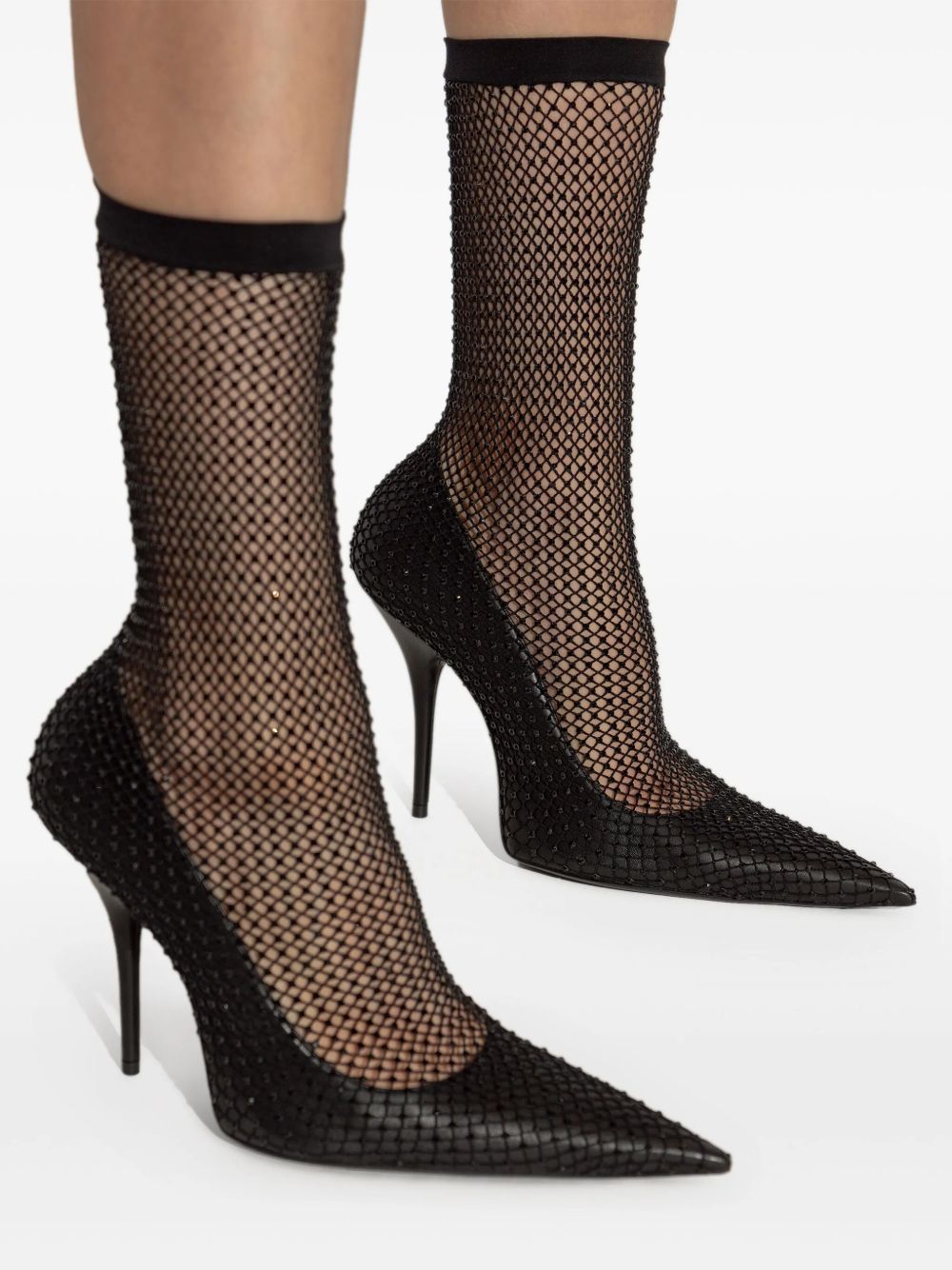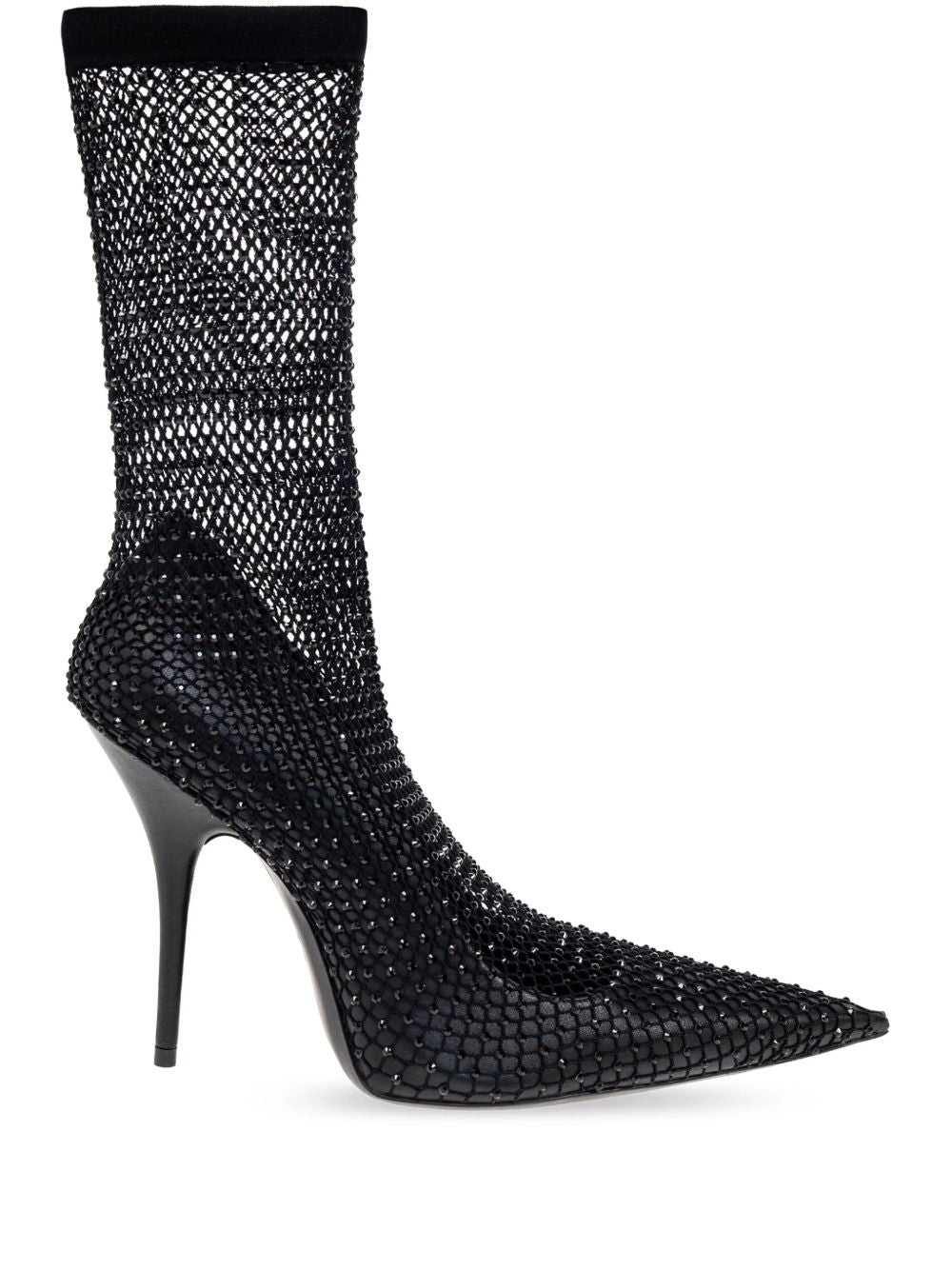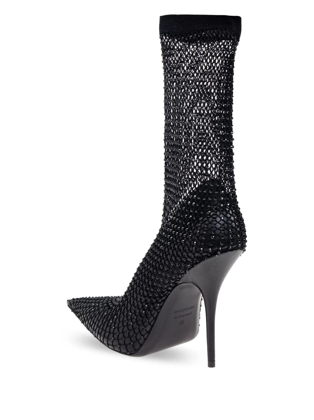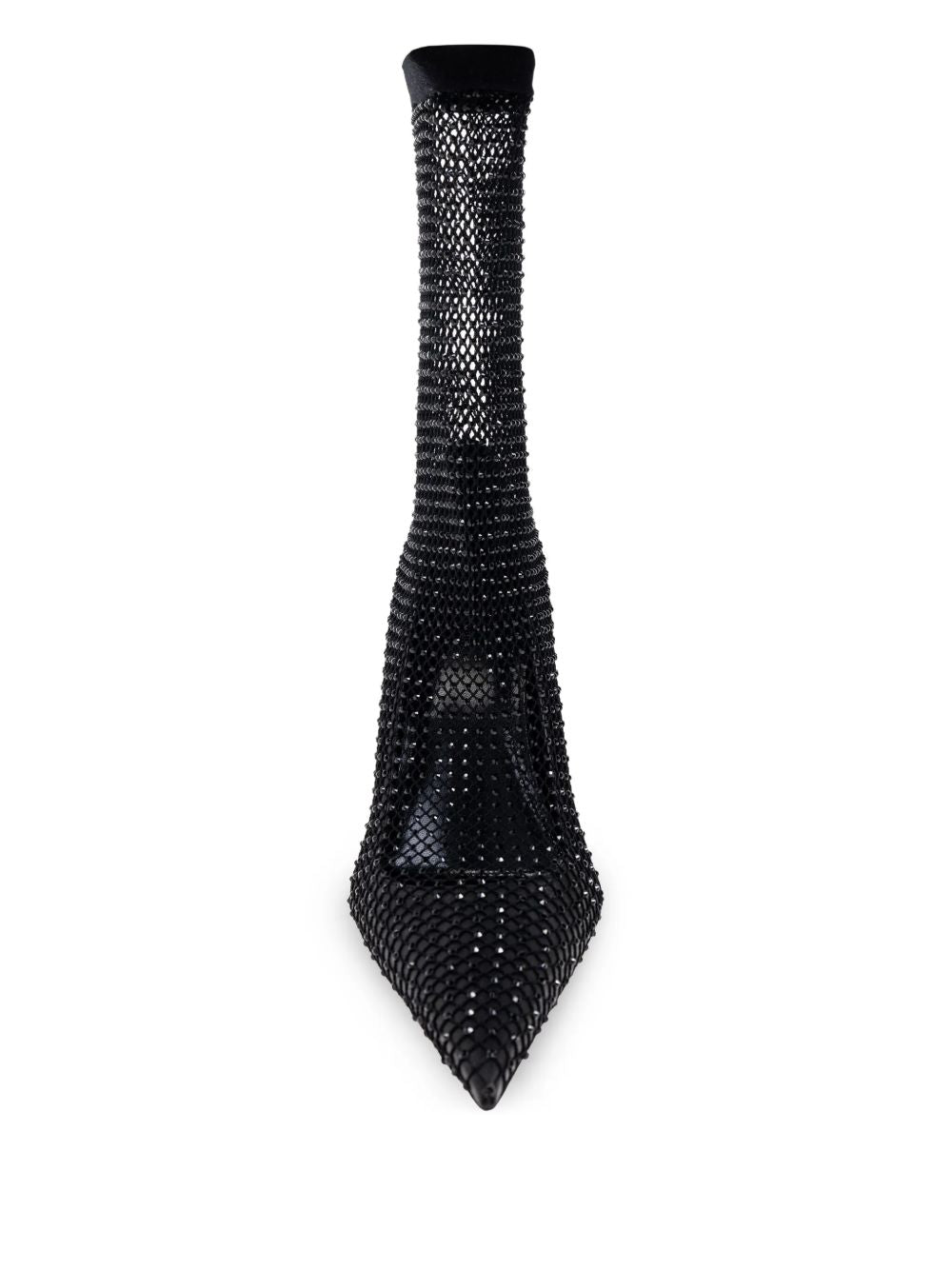 black pull-on style pointed toe rhinestone embellishment high stiletto heel