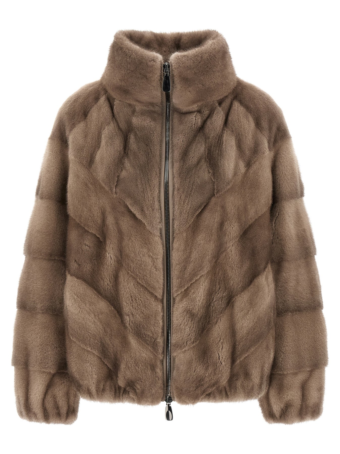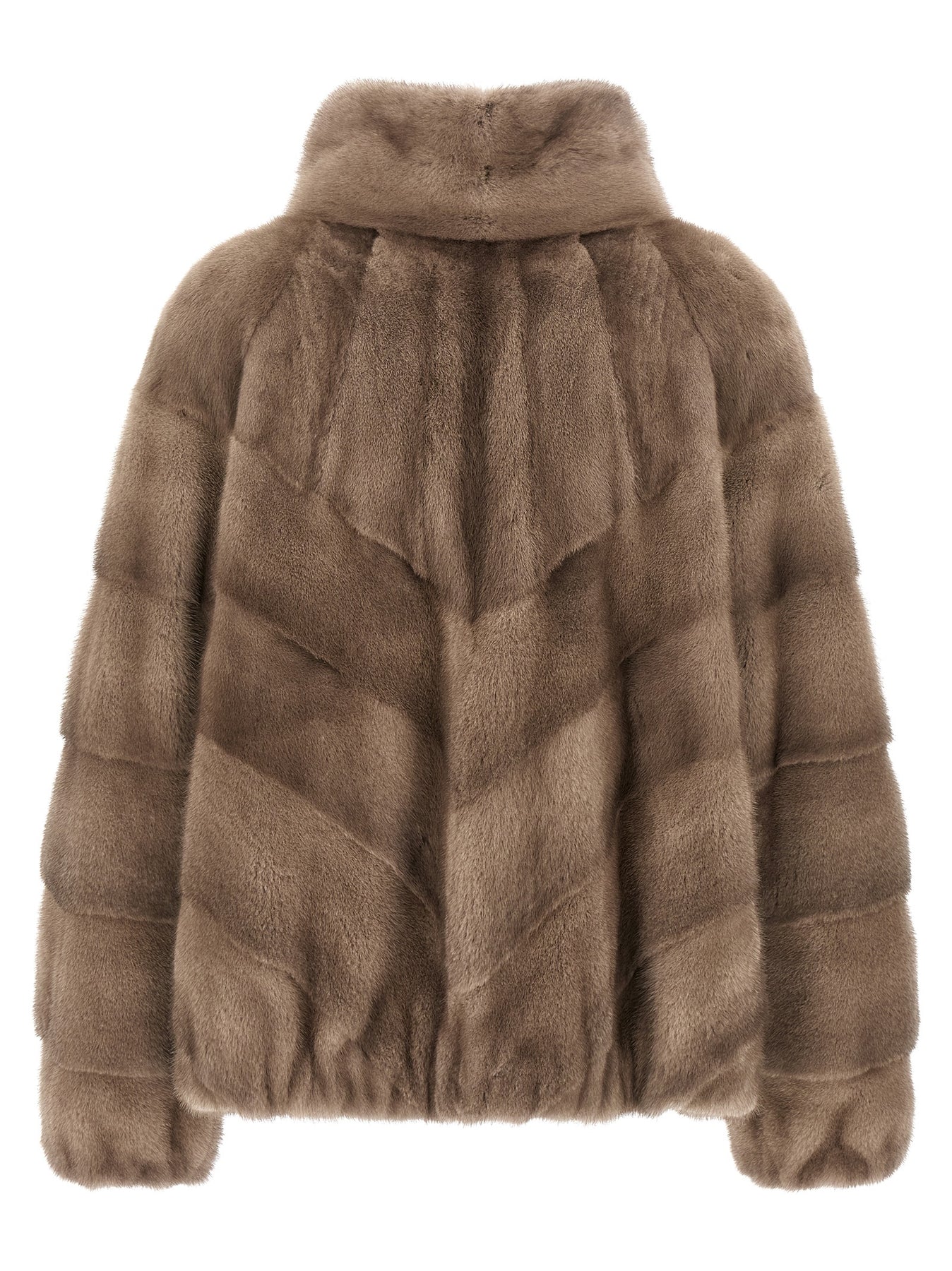 'Boy' jacket in herringbone effect mink fur, lining, crater collar, front zip closure, pockets, long sleeves with elastic cuffs, elastic hem.
