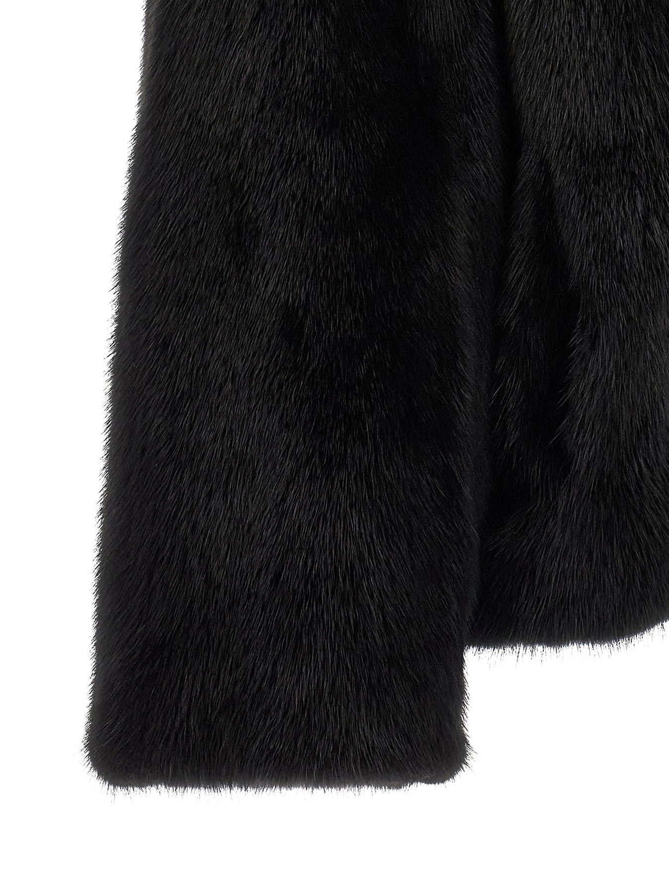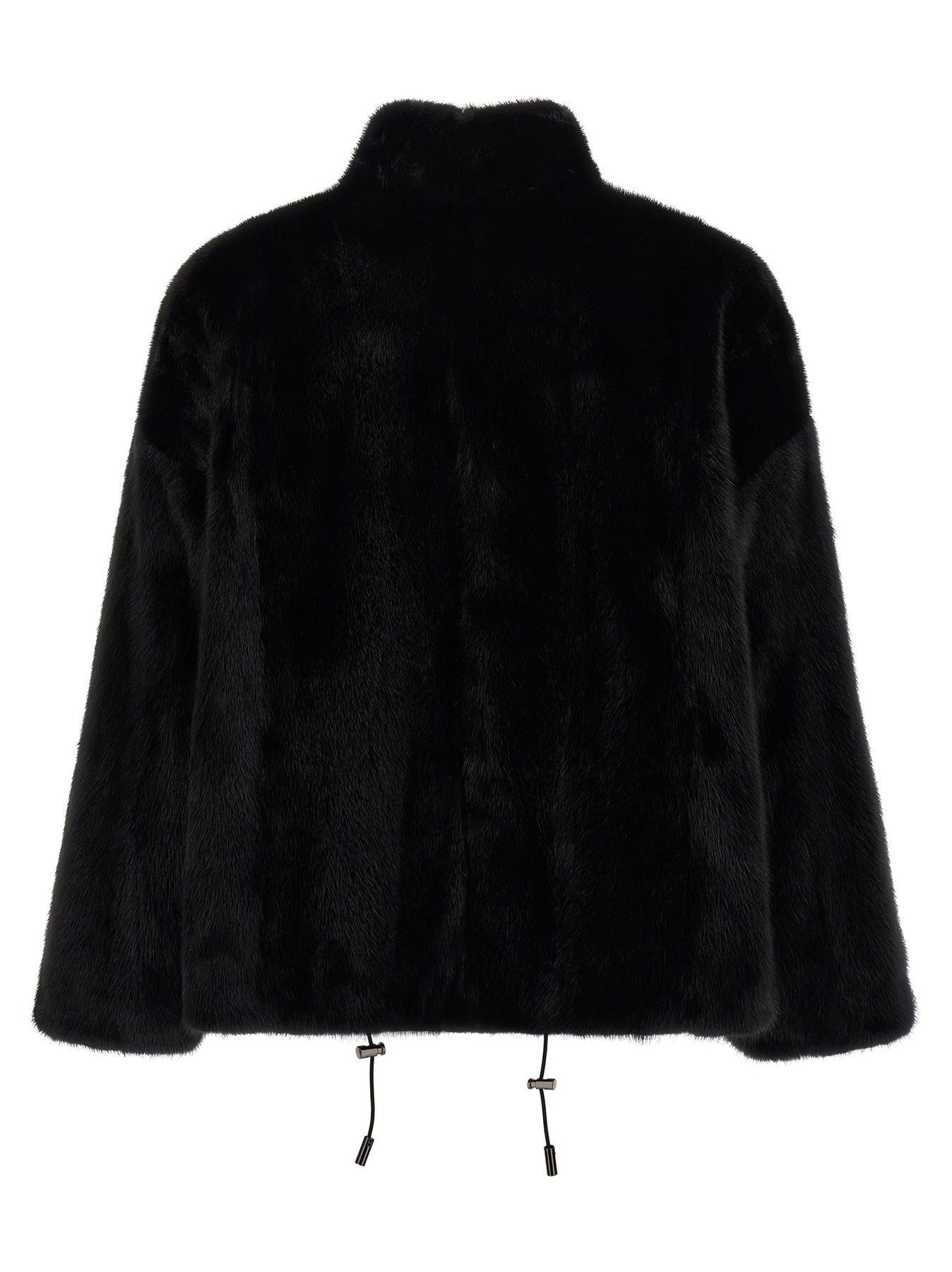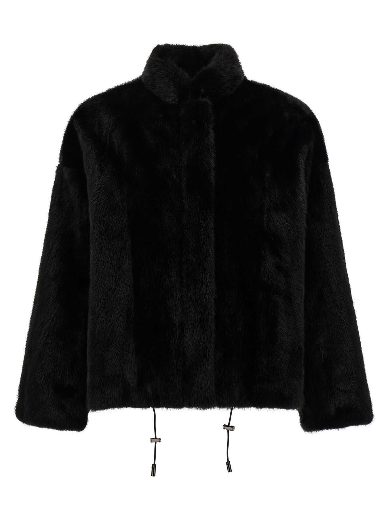 Mink fur 'Urra' bomber jacket with silk lining, standing collar, zip closure and front snap buttons, pockets, long sleeves with drawstring on the cuffs, drawstring on the hem.