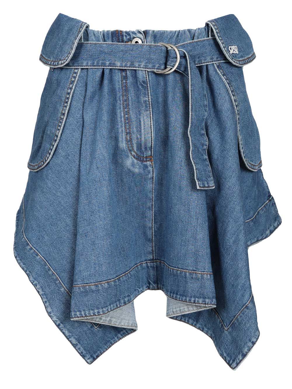Skirt in lightweight washed cotton denim with cargo pockets with flaps at the sides. Regular fit, short model. Mid-rise. Concealed zip closure. Adjustable waistband.