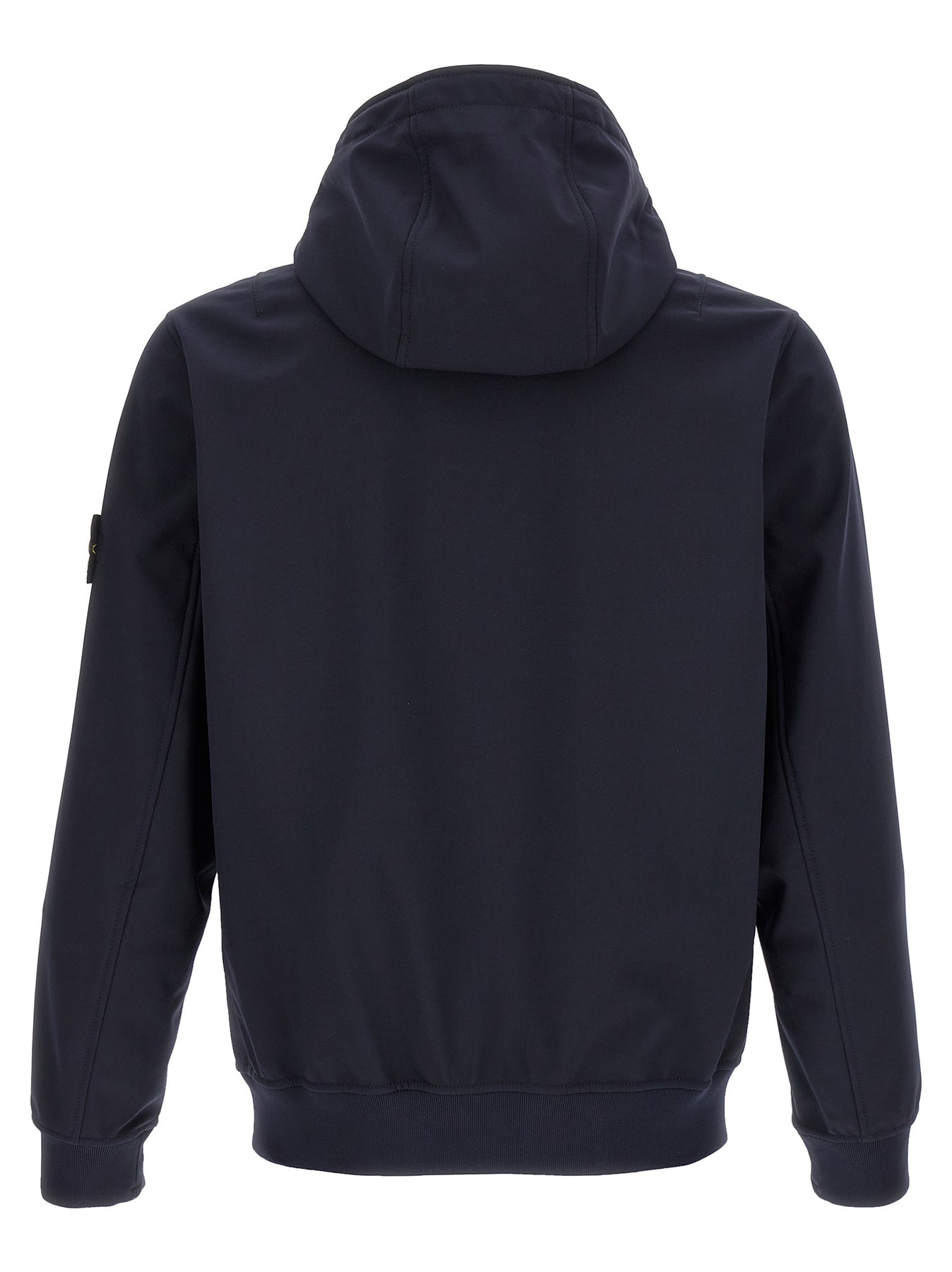 'Soft Shell-R e.dye® Technology' jacket in stretch polyester canvas woven with e.dye® Waterless Color System™ technology yarns, fleece lining, hood, front zip closure, pockets, long cuffed sleeves and logo badge.