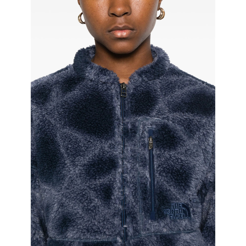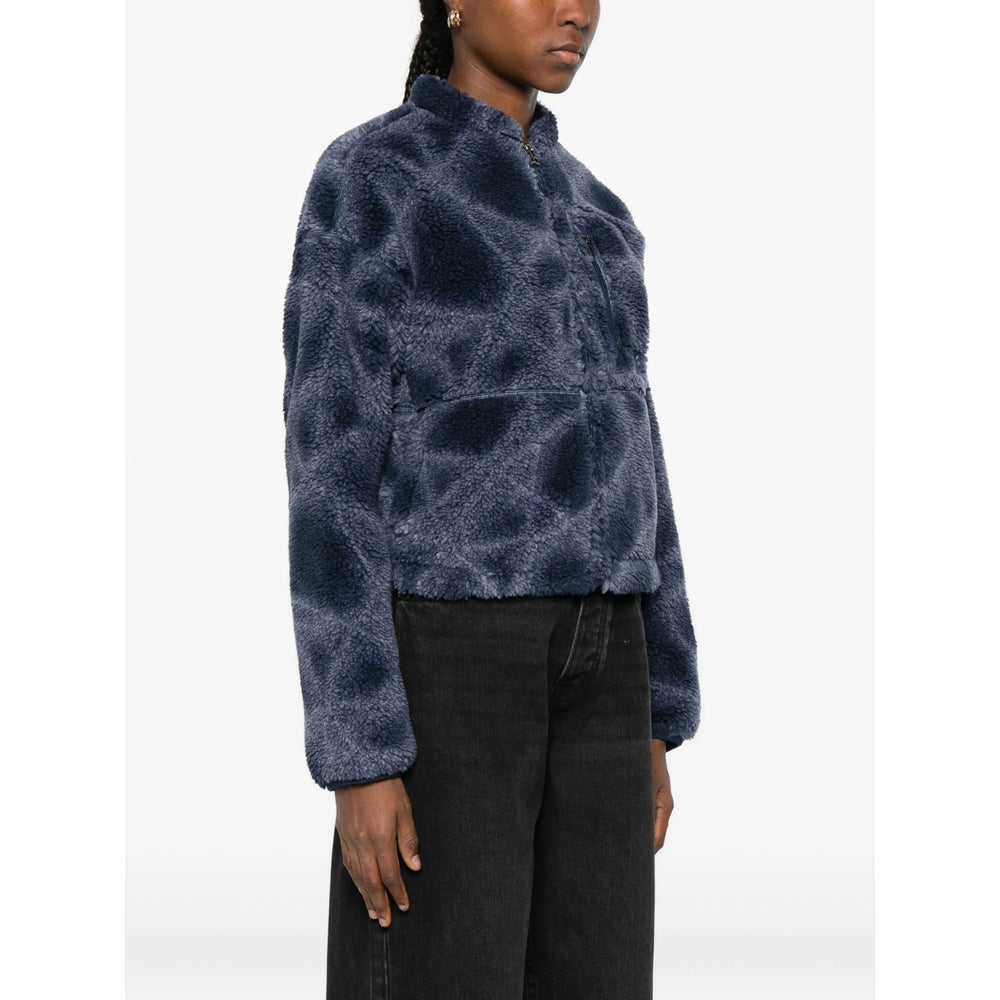 navy blue geometric pattern front zip fastening long sleeves cropped