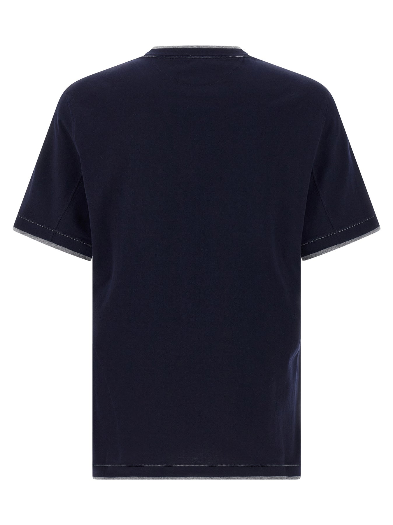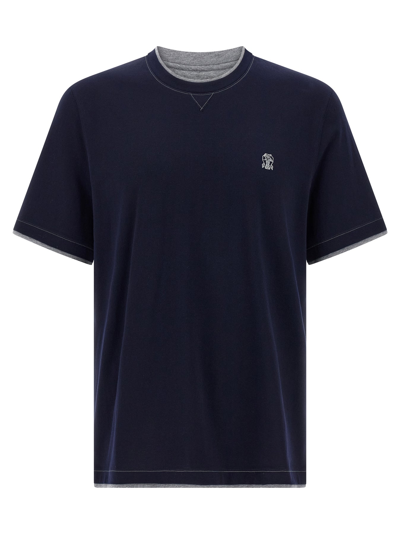 Cotton jersey t-shirt with double layer contrast inserts, contrast stitching, front logo embroidery, crew neck, short sleeves.