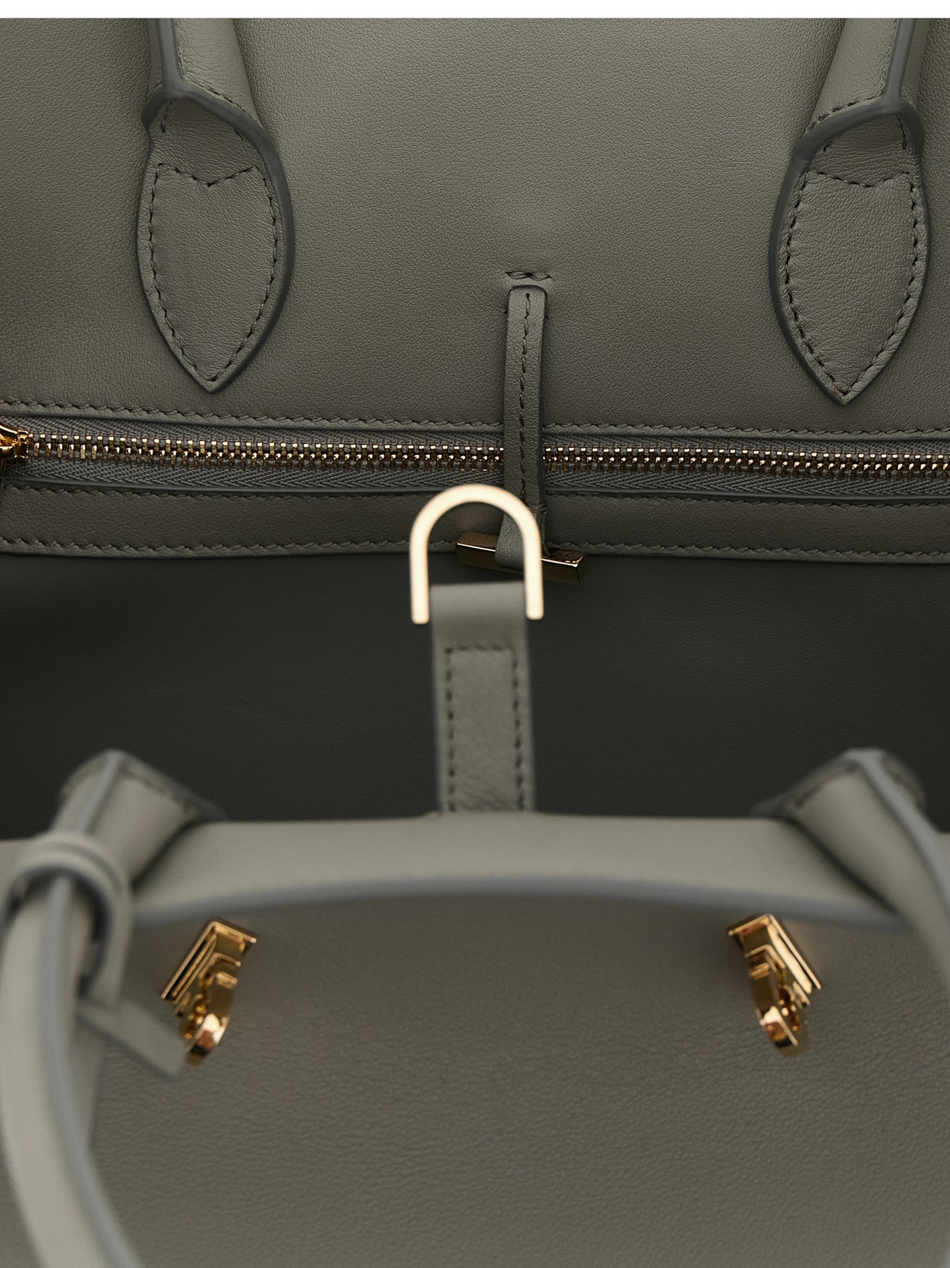 'Hug (M)' handbag in calf leather treated with vegetable anilines, front embossed logo, side gussets with metal 'Gancini' decoration, inner bitter closure, double fixed tubular handle, rigid base with metal feet, adjustable and removable shoulder strap, removable keyring.