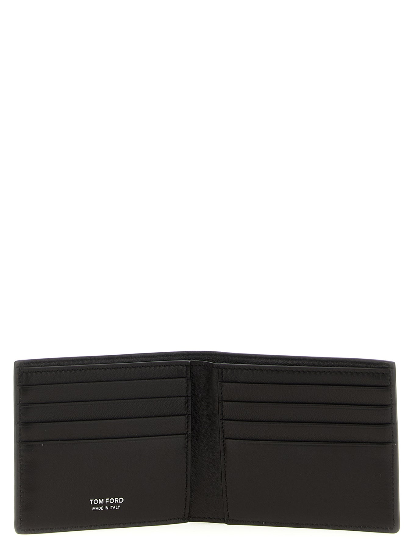 Croc print shiny leather wallet, front embossed logo, and book opening.