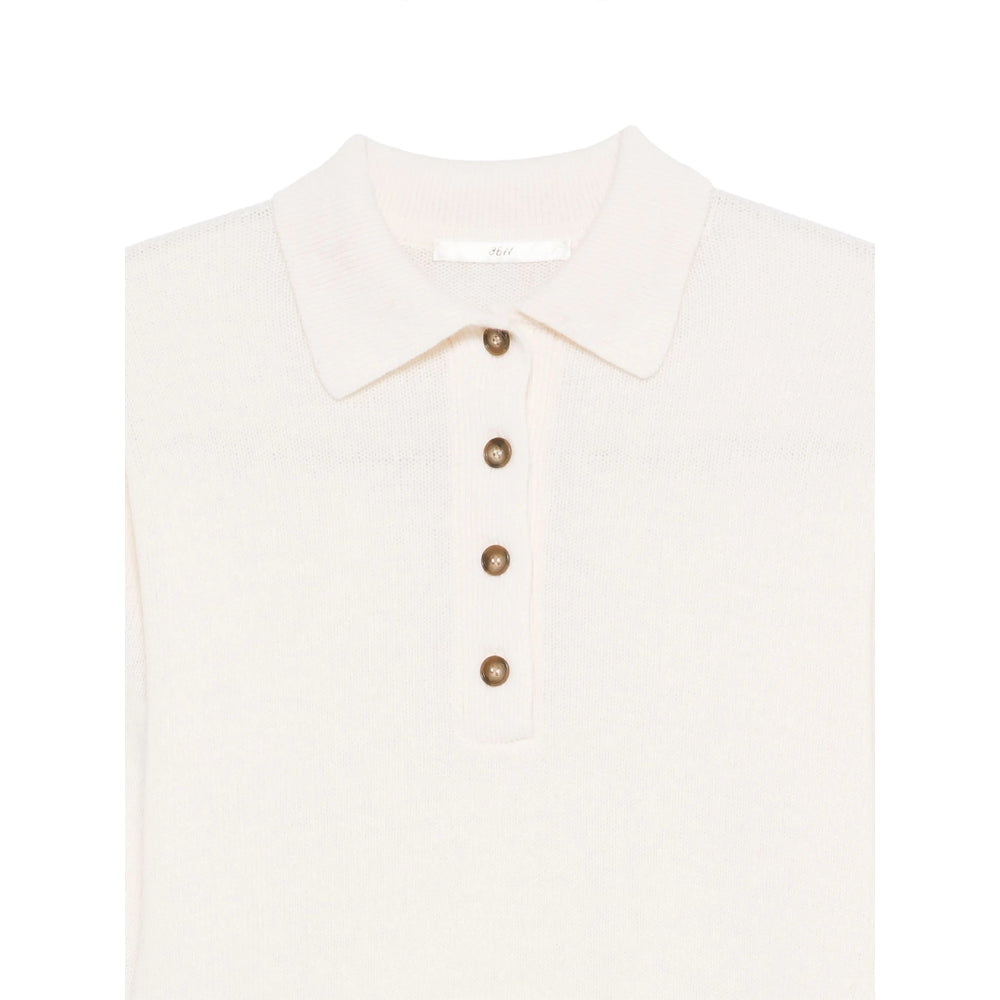 white button fastening polo collar asymmetric hem long sleeves ribbed knit