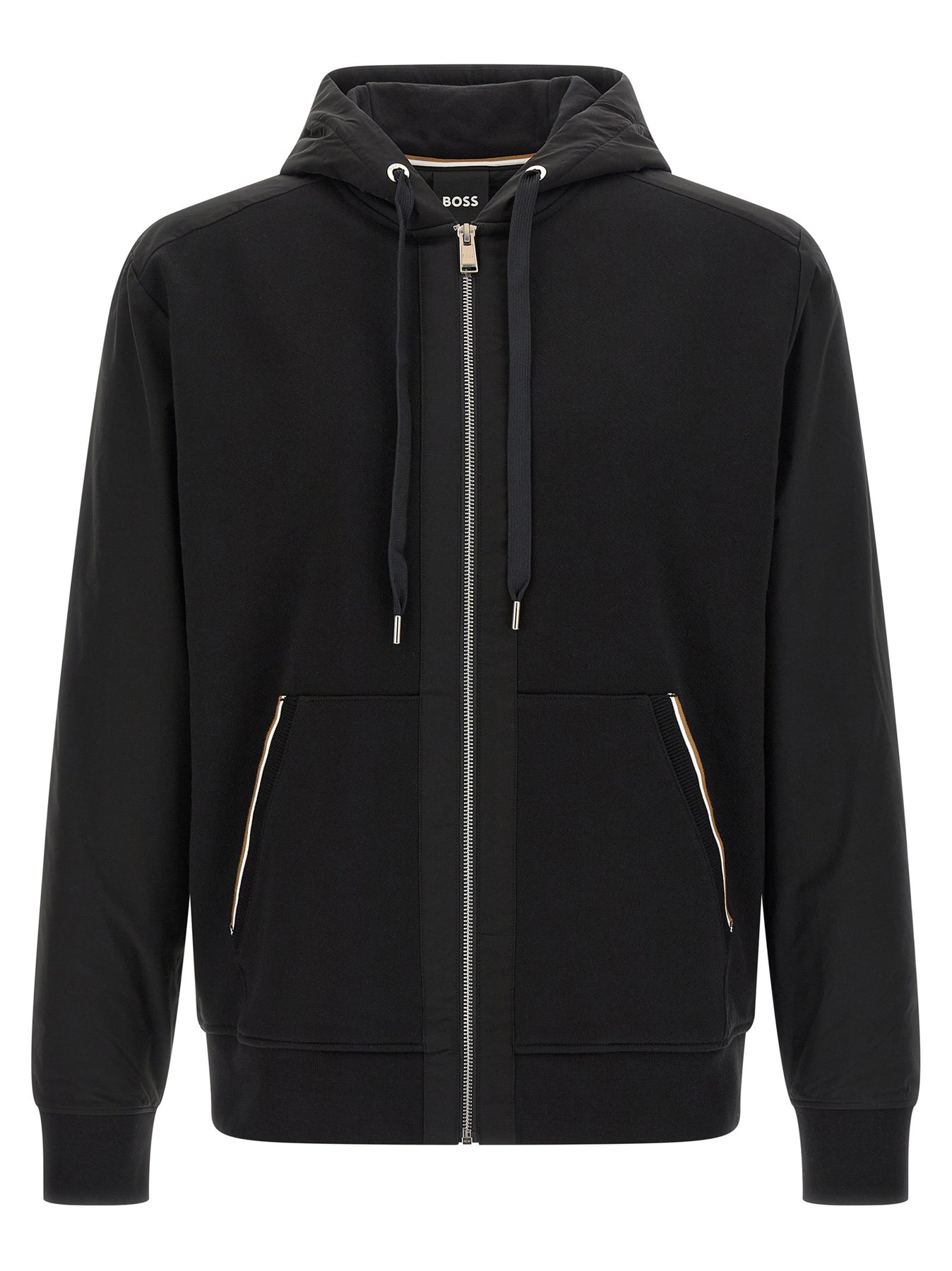 'C-Spence 10' cotton terry hoodie with sleeves, hood and lining in tone-on-tone technical fabric, front zip closure, pockets with contrast ribbed stretch piping, long cuffed sleeves, and headband. SUSTAINABLE: product made with cotton from sustainable agriculture.