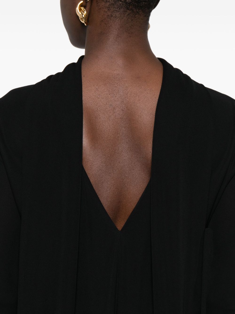 black high neck long sleeves asymmetric hem rear slit
