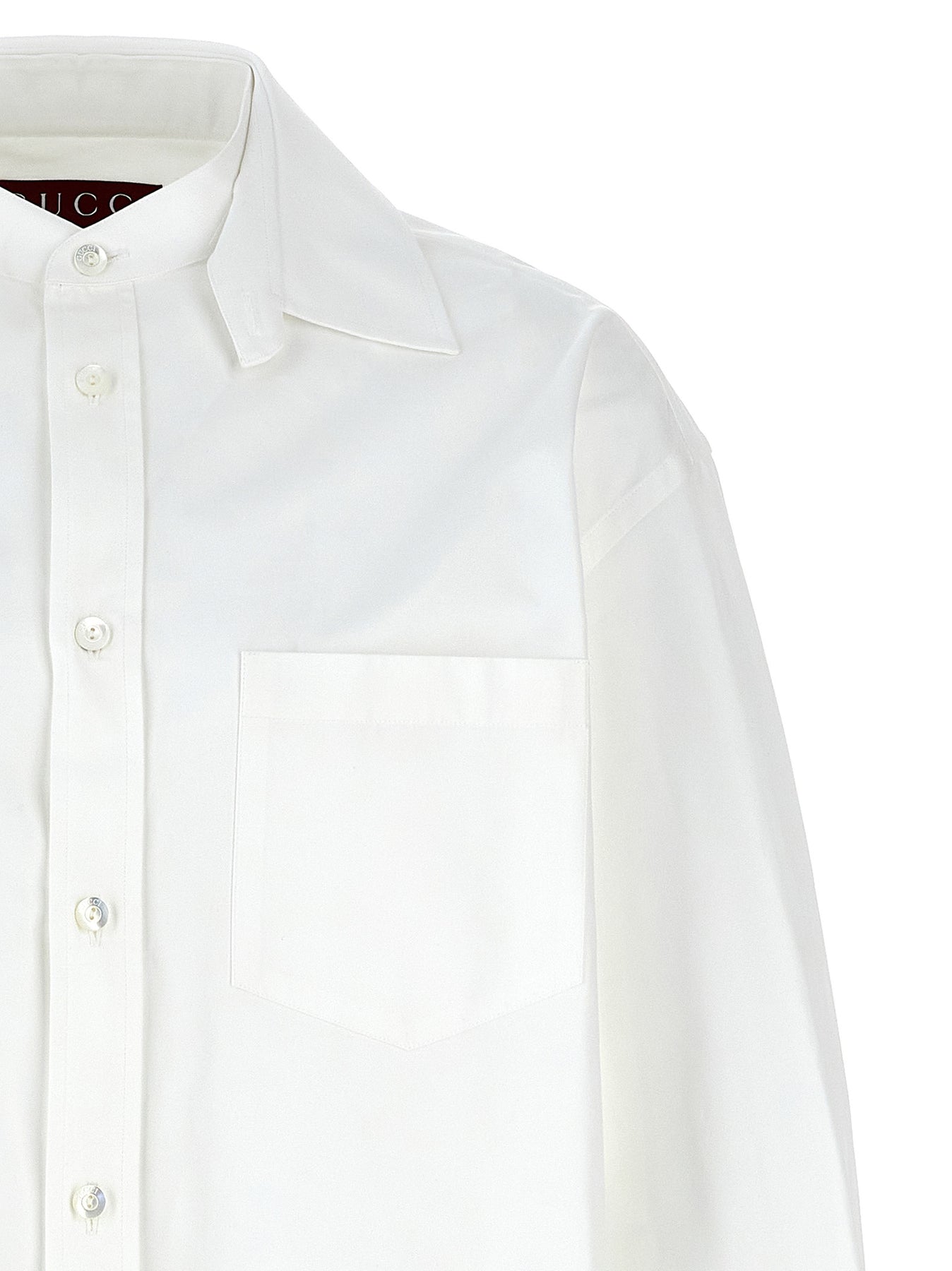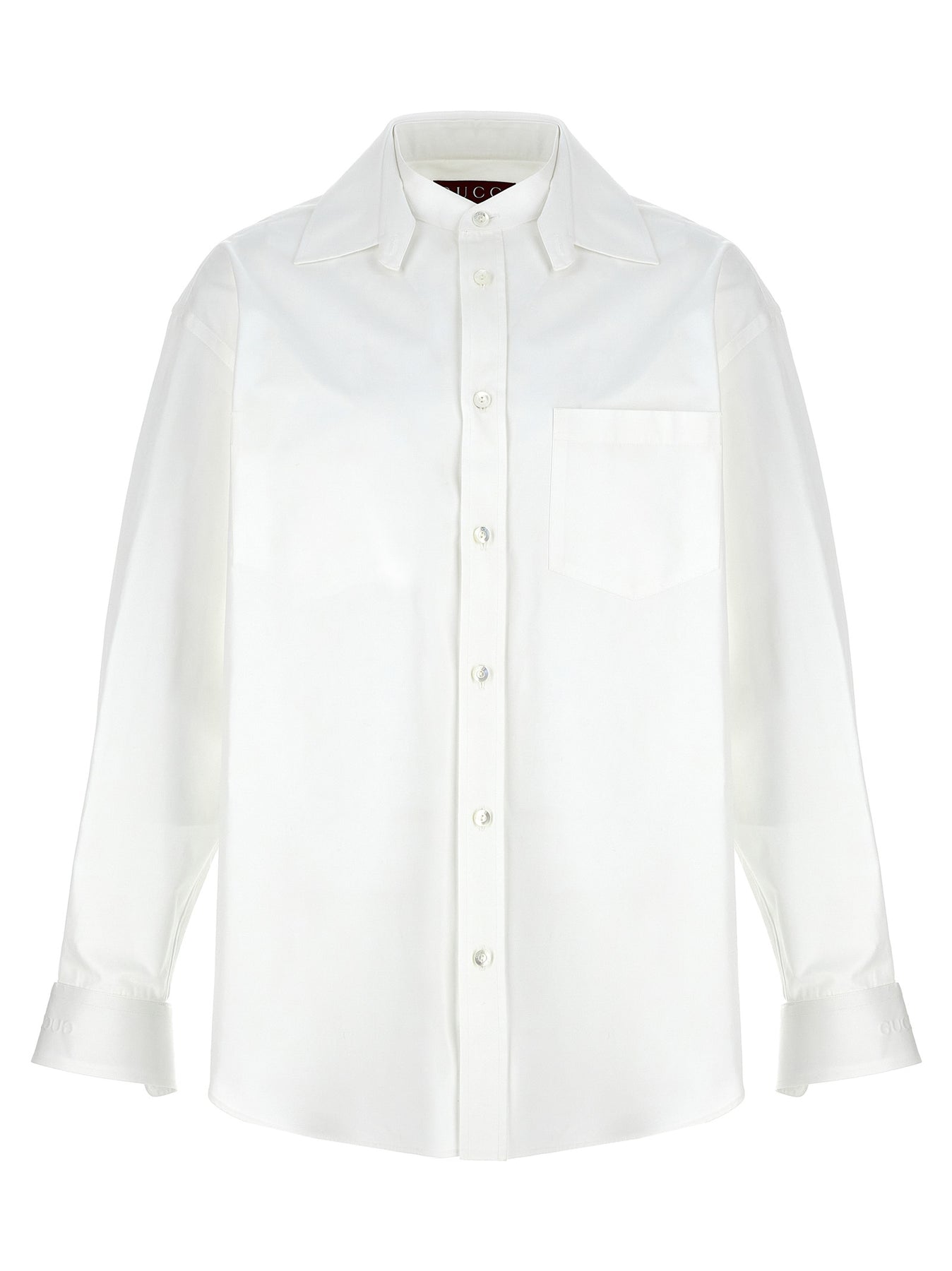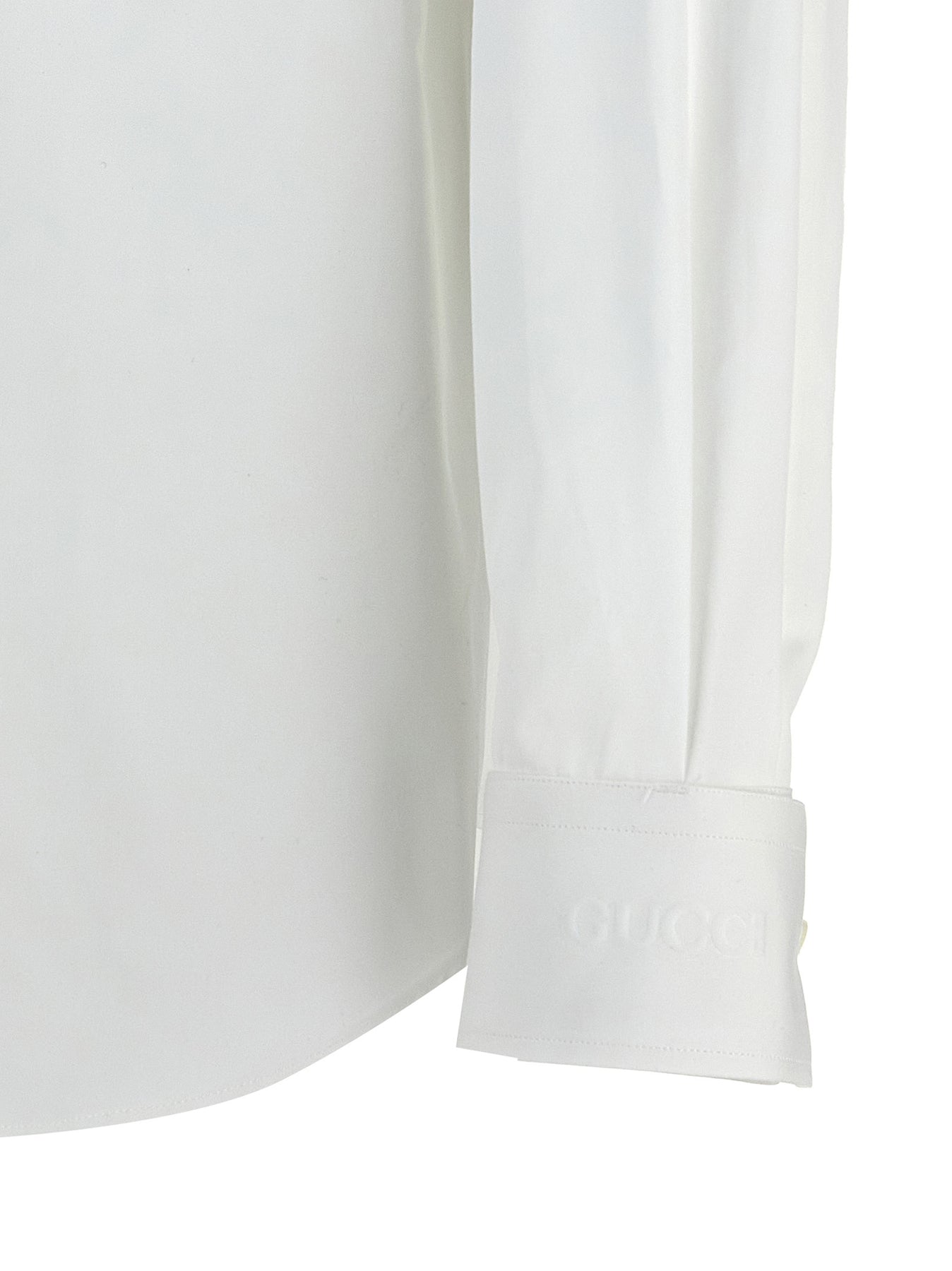 Cotton poplin shirt with double collar, button closure, long sleeves with double cuffs.