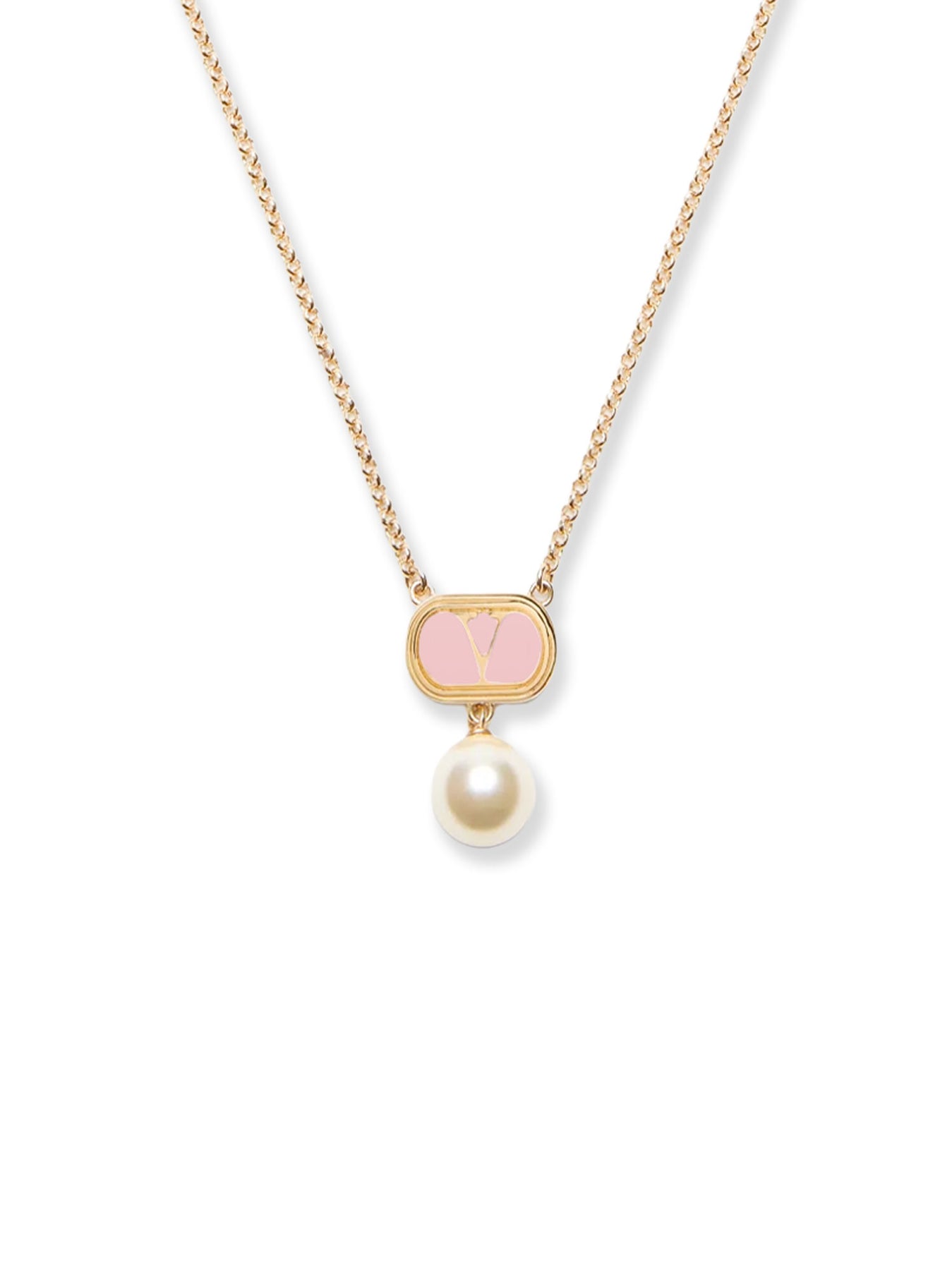 Adjustable metal hook closure Enamelled Vlogo detail Pearl charm Made in Italy 100% bronze SKU: 7W2J0X88LTDBYT