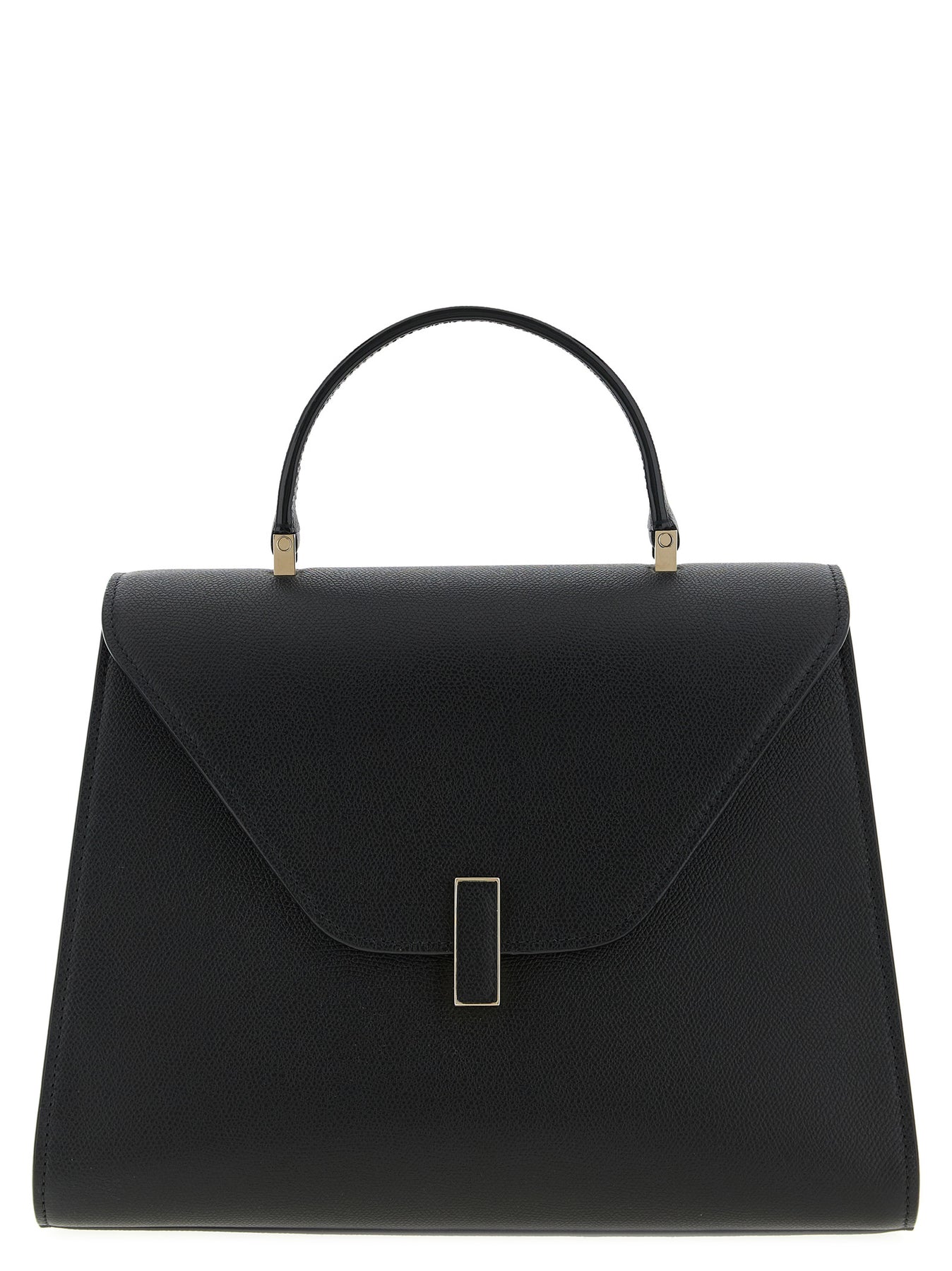 'Iside' large handbag in Millepunte calf leather, Costa Valextra piping, fixed handle, flap turn-lock closure, metal details, adjustable and removable shoulder strap.