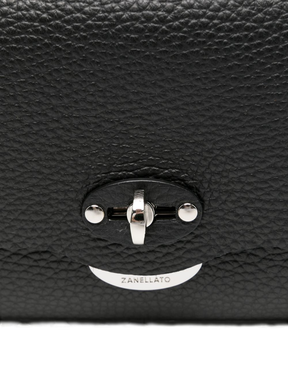 black grained finish turn-lock fastening internal slip pocket This piece comes complete with a protective dust bag.