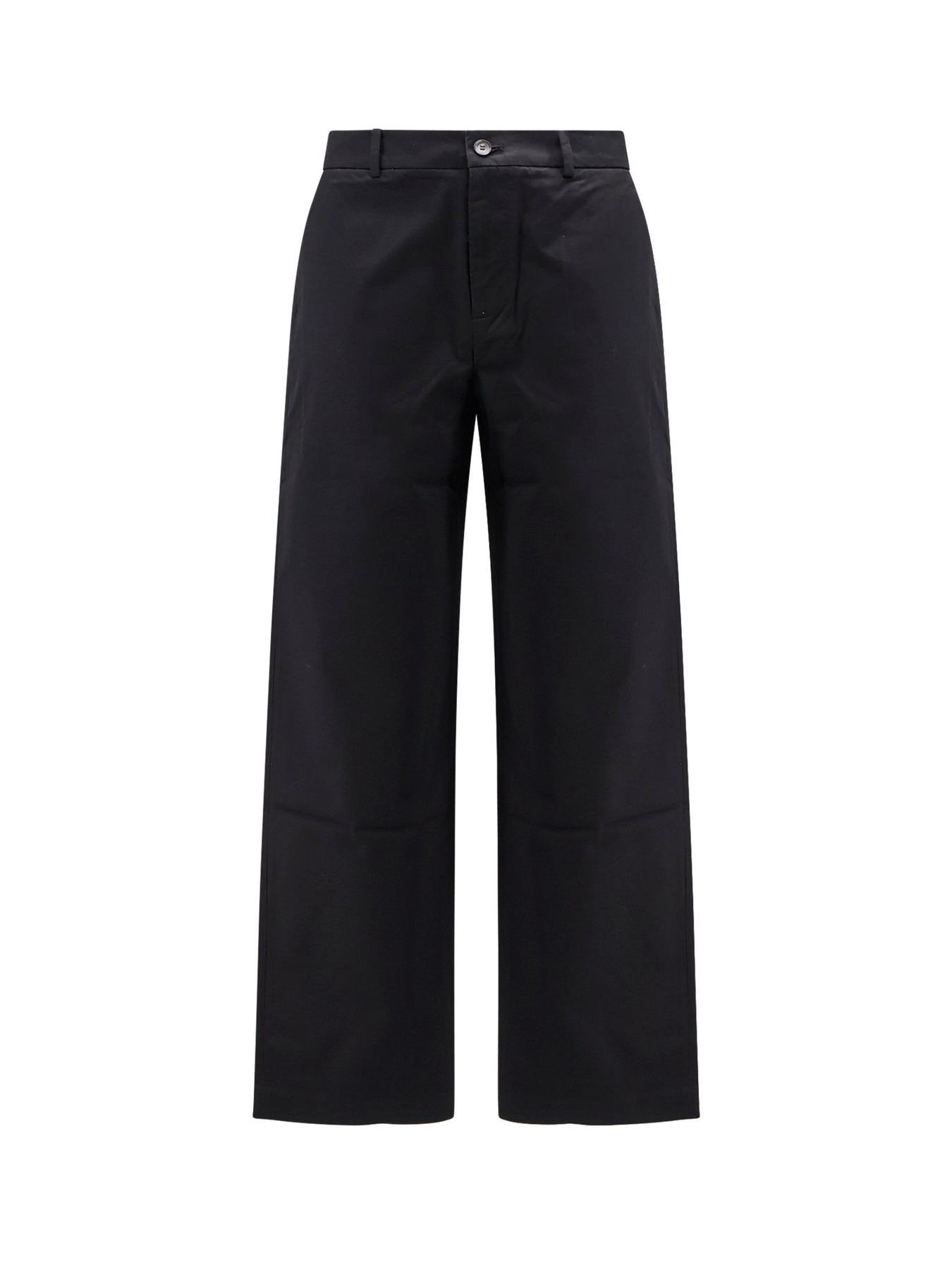 Button and zip closure Side pockets on the front Welt pockets on the back Wide leg 100% cotton SKU: A3061001BLACK