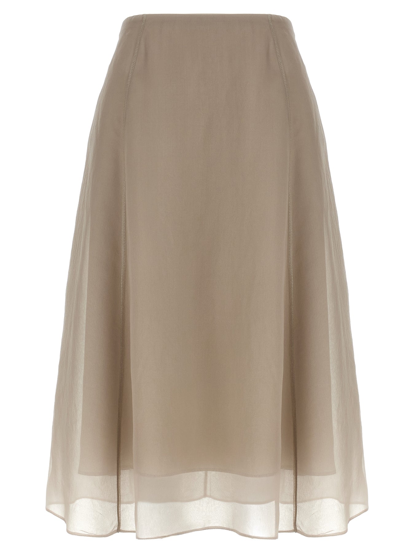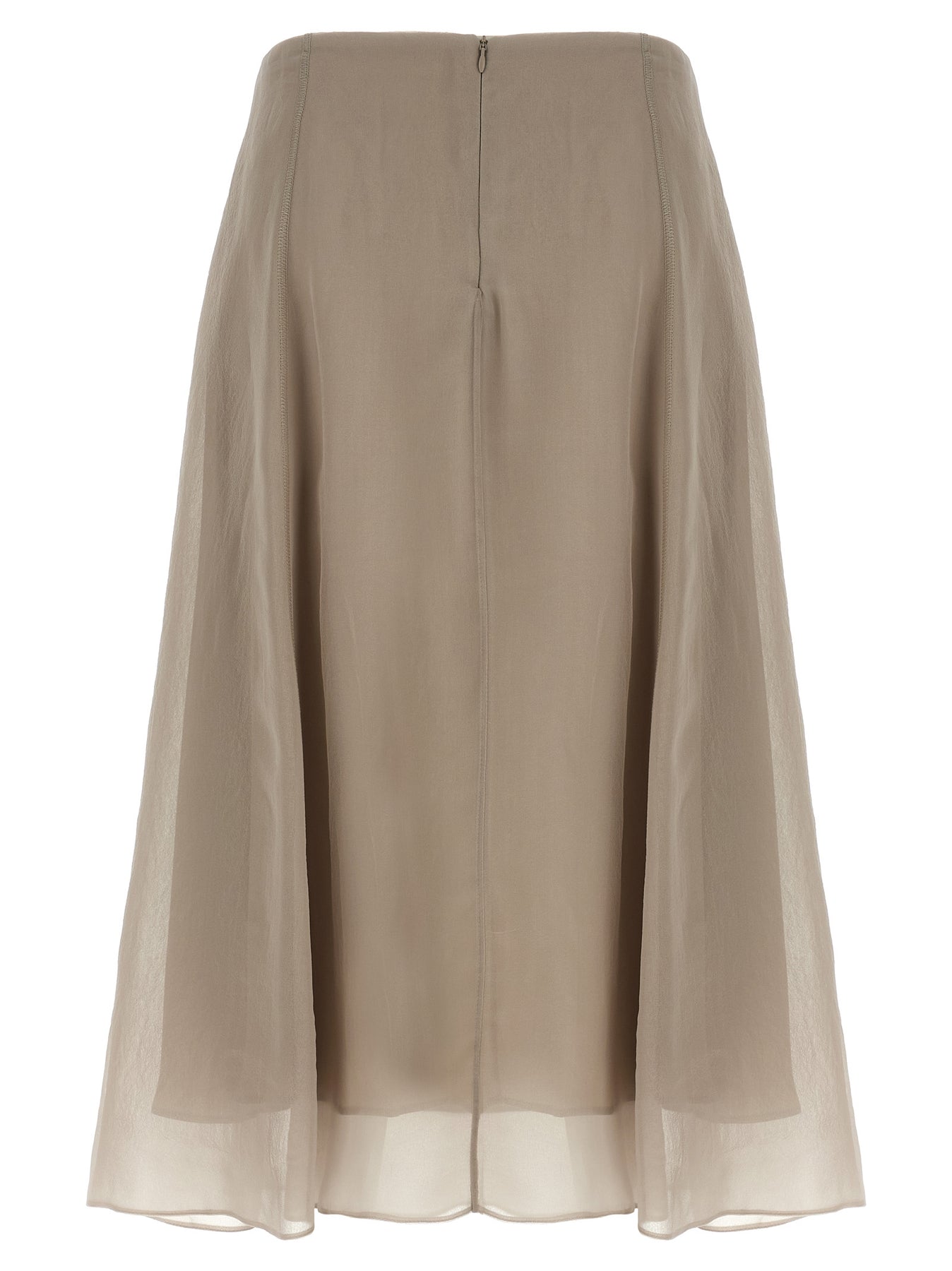 'Circle' midi skirt in semi-transparent Crispy silk, matte, multi-layer effect, side zip and hook closure.
