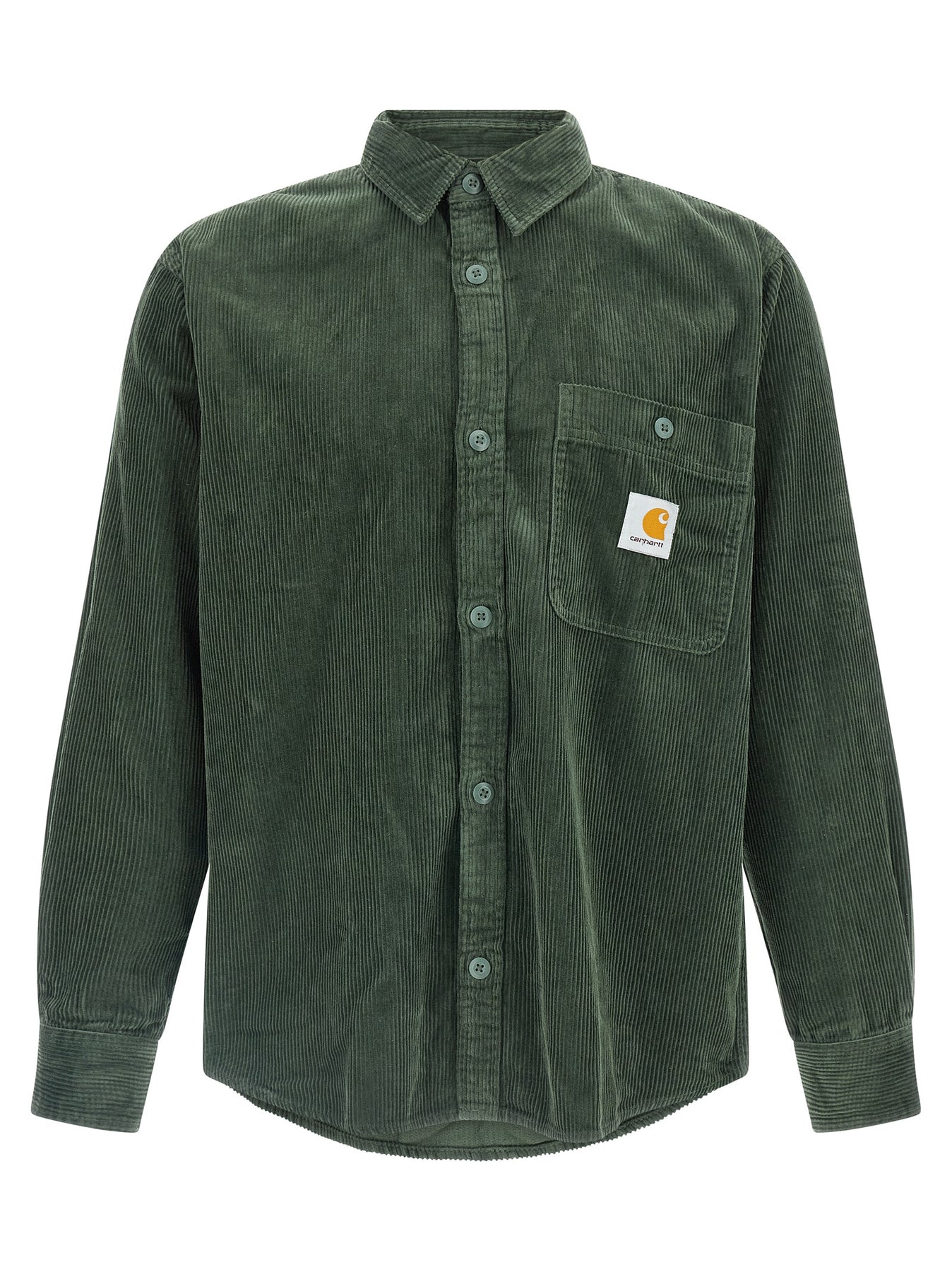 'Flint' corduroy shirt with front button closure, collar, front pocket with front logo patch, long cuffed sleeves.