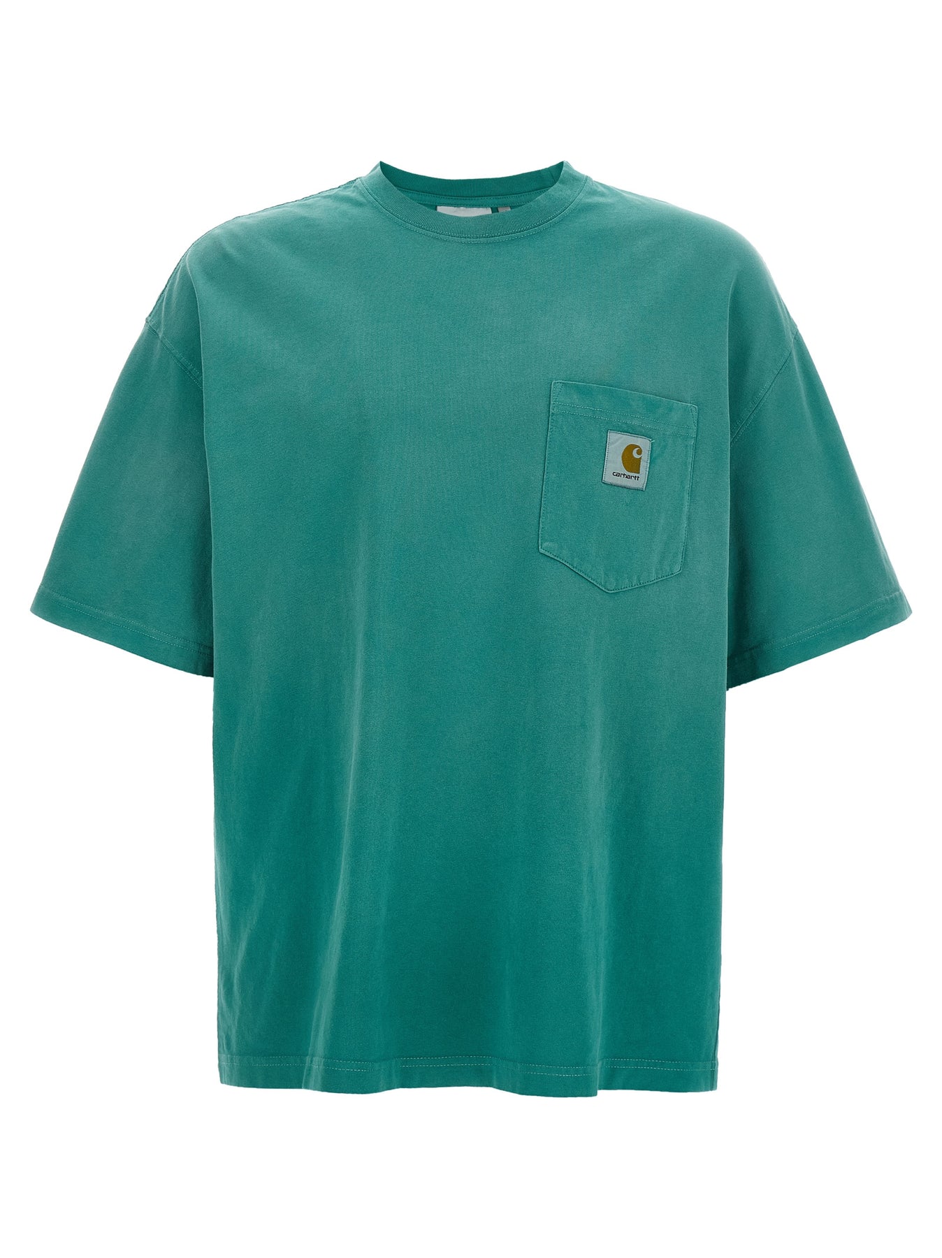 'Hudson' cotton T-shirt dyed Delavé garment, crew neck, patch pocket with logo, short sleeves.
