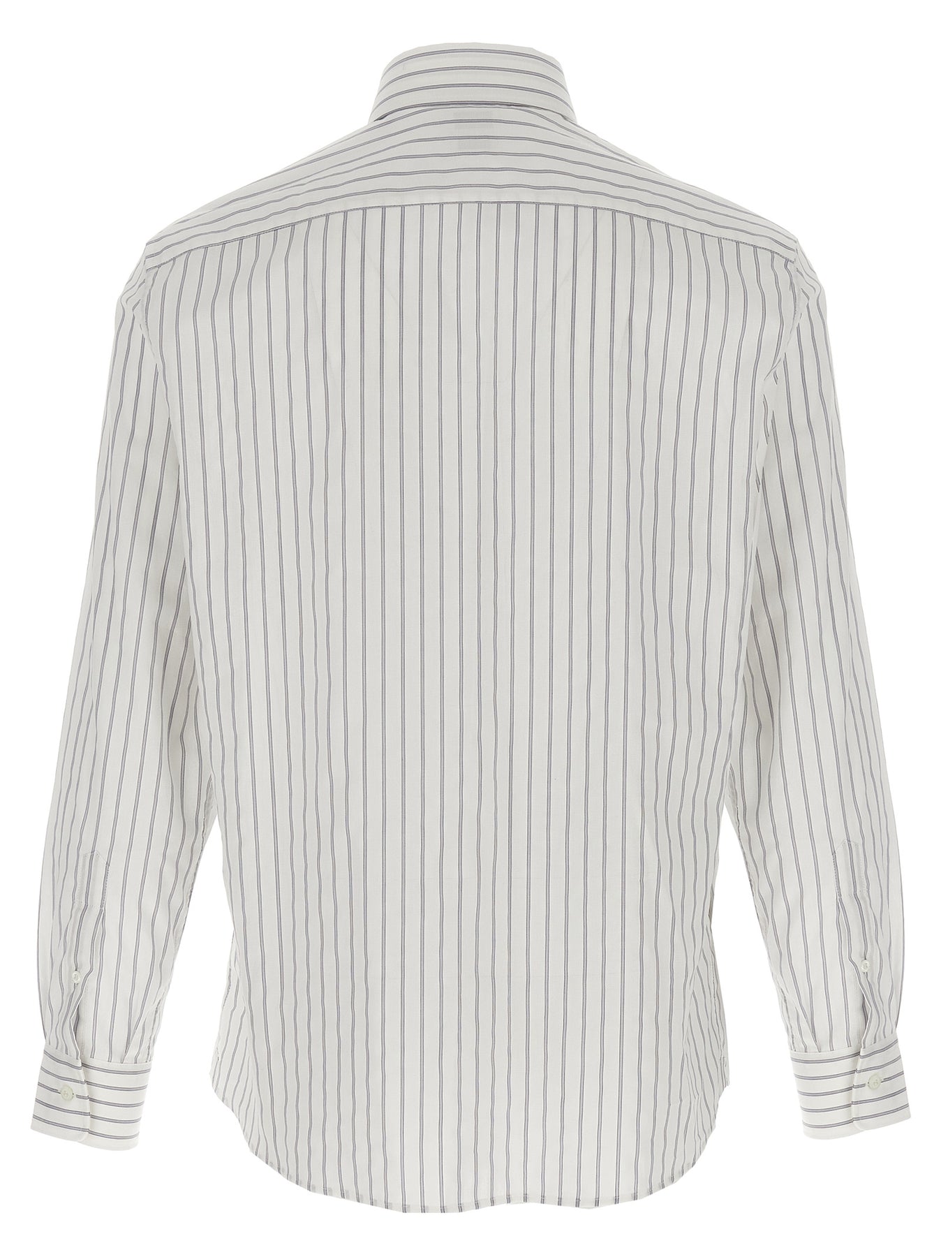 Striped and operated cotton canvas shirt, French collar, front button closure, long cuffed sleeves.