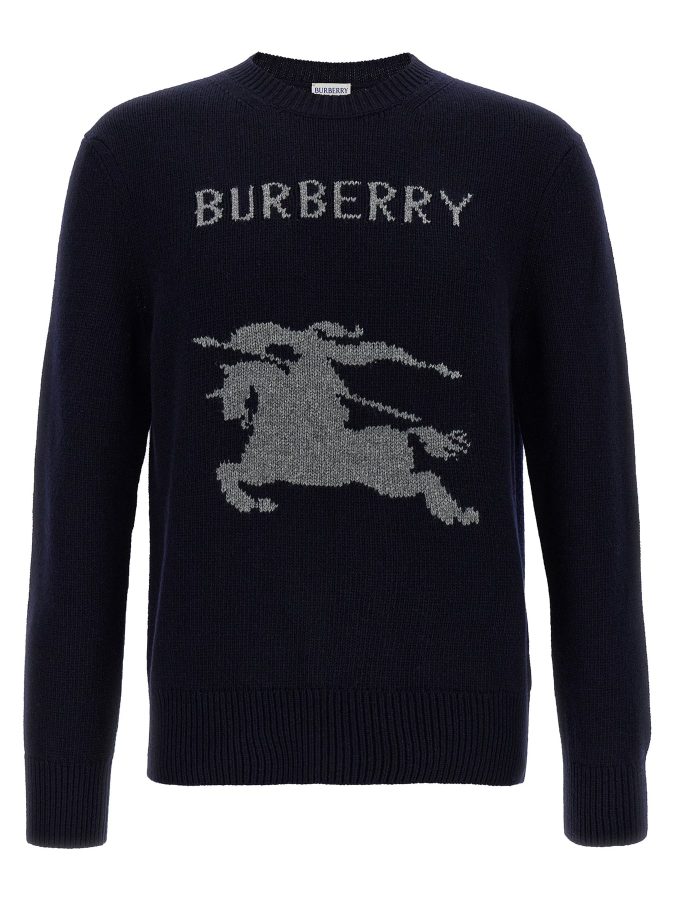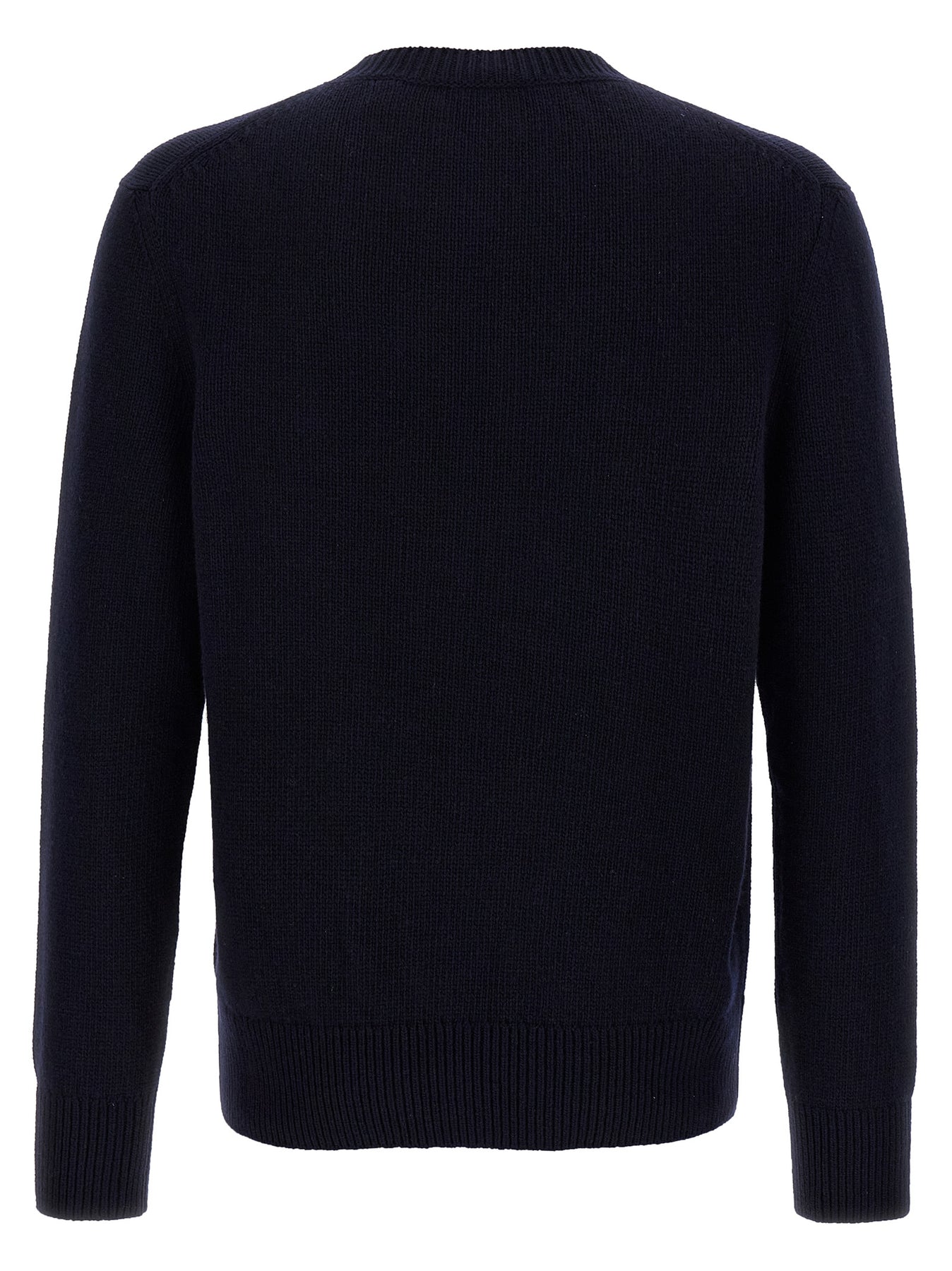 Wool and cashmere blend sweater with front logo intarsia, crew neck, long cuffed sleeves.