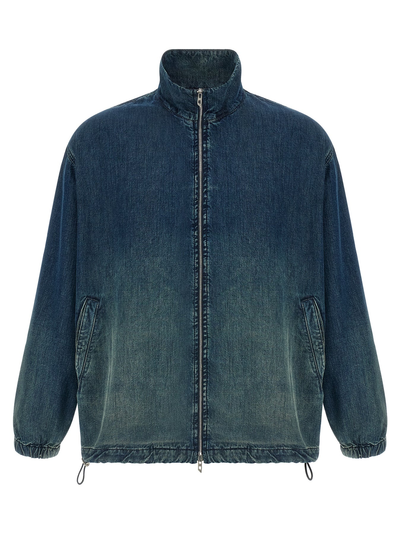 'D-Krap-S6' stonewashed TENCEL™ Lyocell jacket with laser and spray processing, high neck, front zip closure, pockets, long sleeves with cut-out logo, elastic cuffs and dropped shoulders, drawstring on the hem.