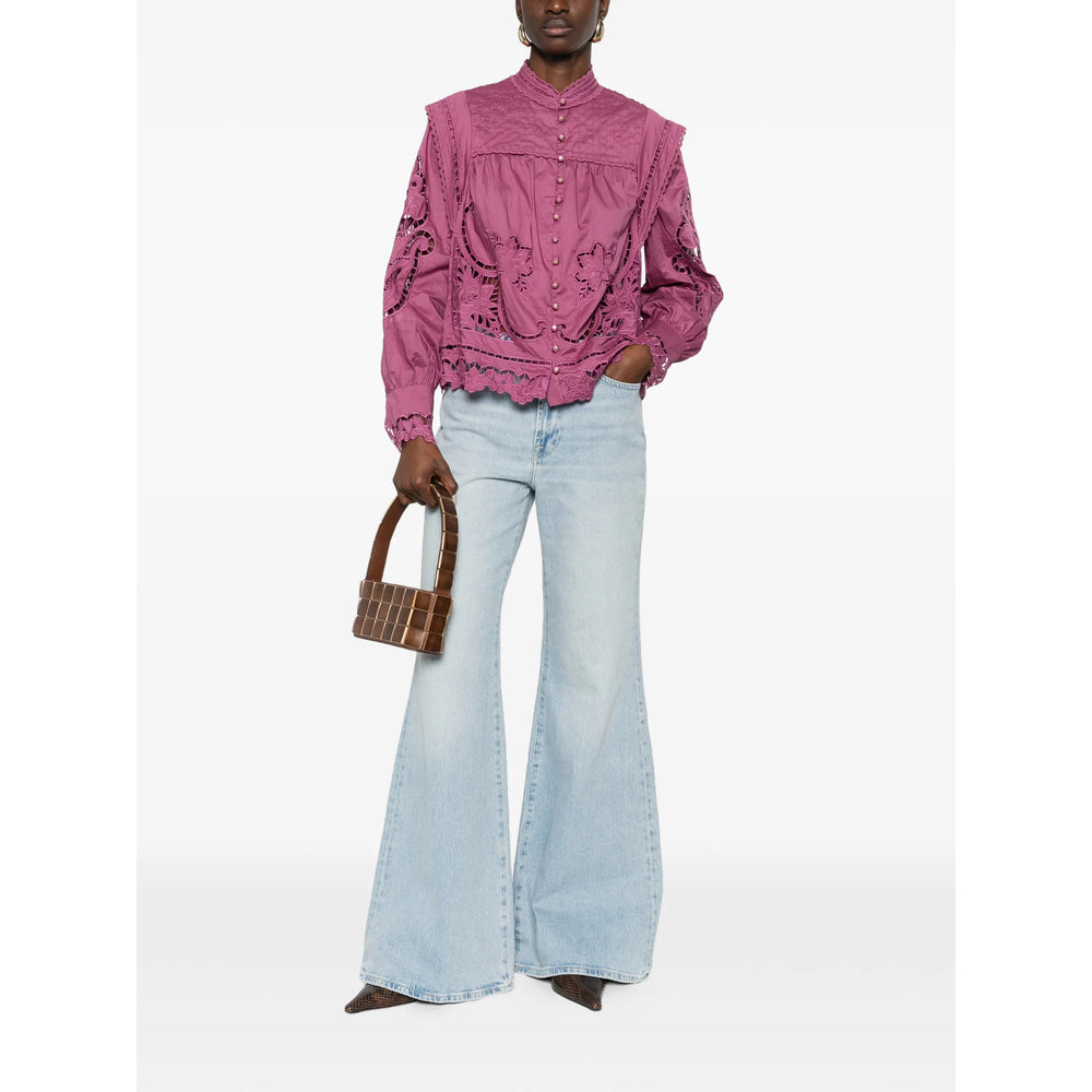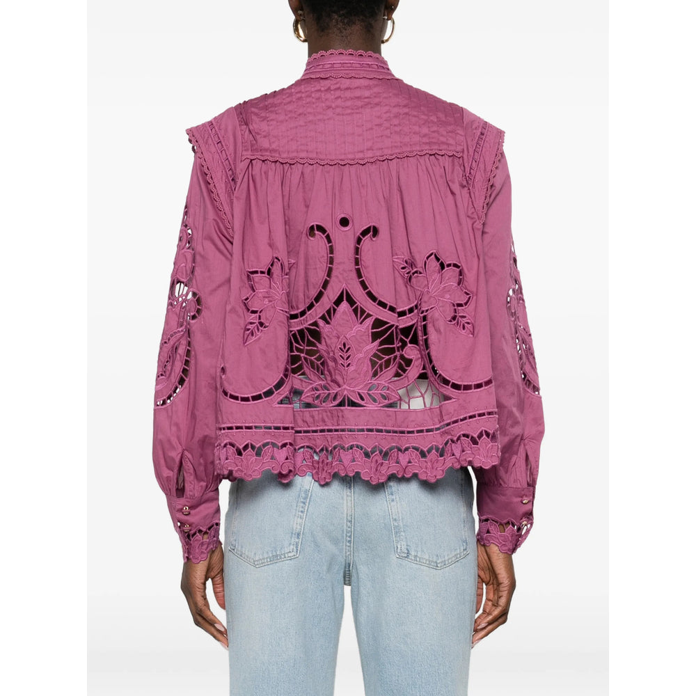 pink floral cut-out scalloped hem gathered detailing button fastening long sleeves