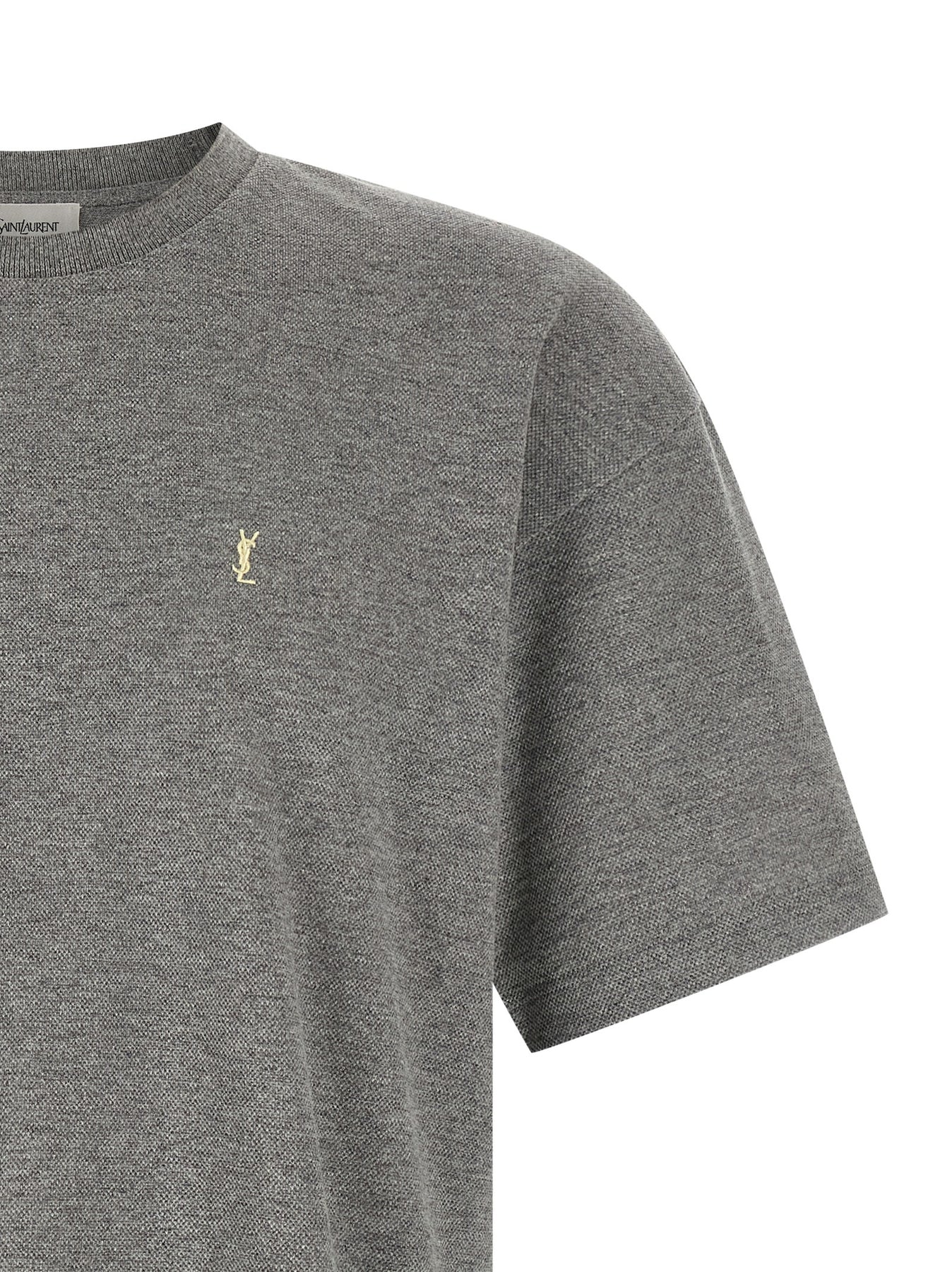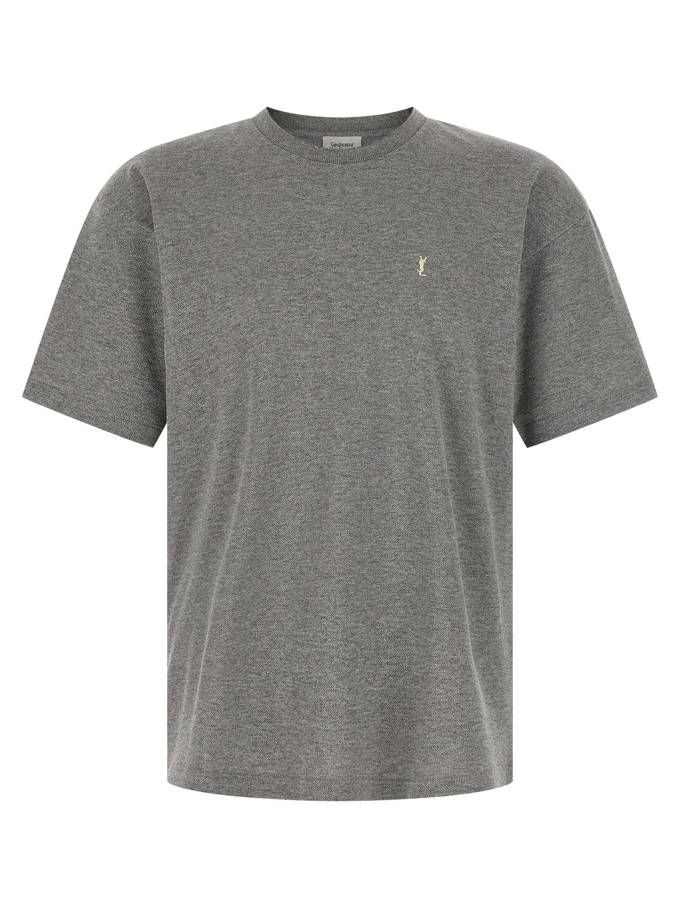 Piqué cotton blend T-shirt, front 'Cassandre' logo embroidery, crew neck, short sleeves with dropped shoulders. SUSTAINABLE: Product made with recycled materials.