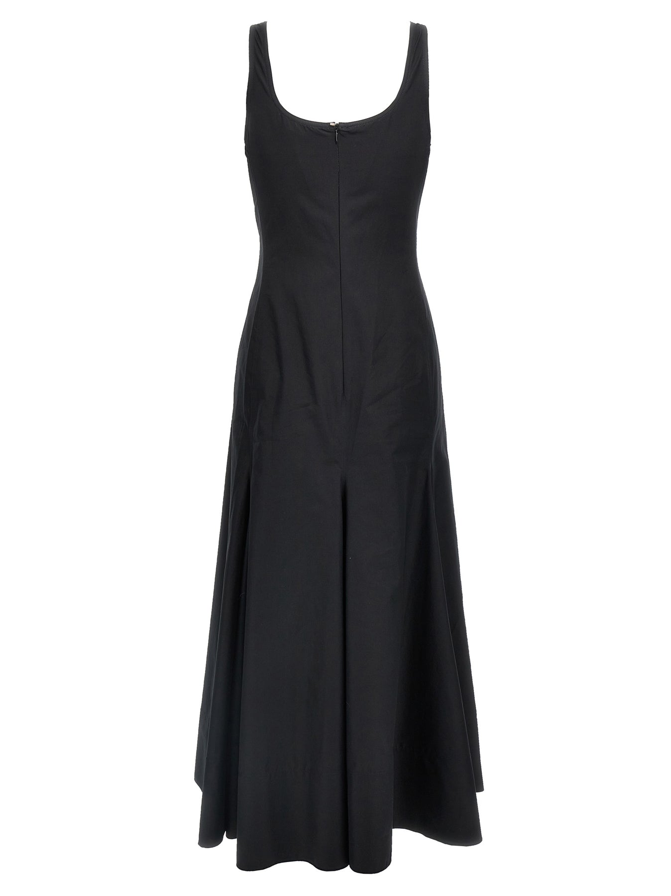 'Galante' dress in cotton poplin with front curls, round neckline, sleeveless, full skirt, back zip closure.