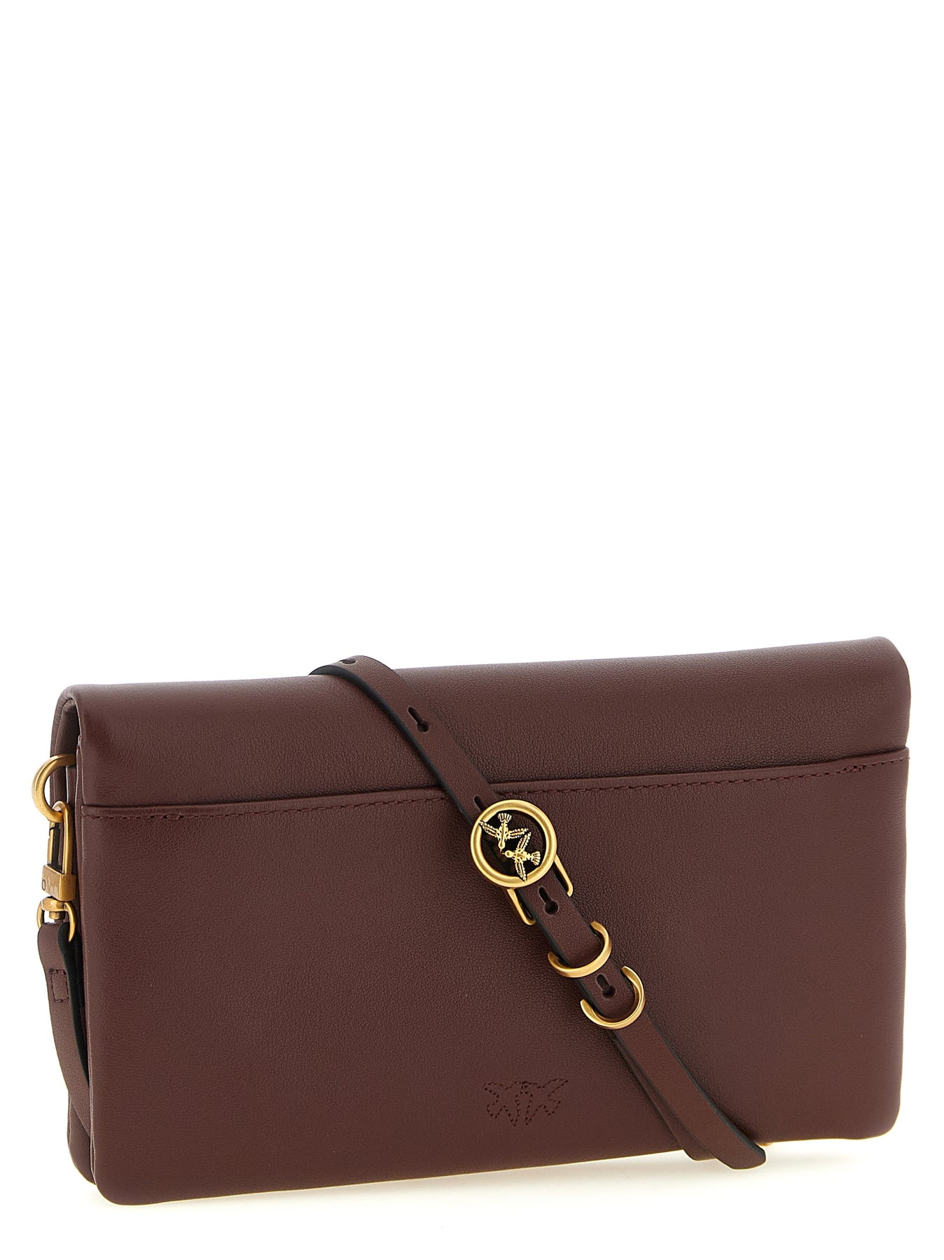 'Love Click Soft Horizontal' mini padded leather clutch bag with flat design with rectangular shape, magnetic flap closure with front metal 'Love Birds Diamond Cut' logo, back pocket, cotton drill lining, removable chain shoulder strap, adjustable and removable leather shoulder strap decorated with metal that form the lettering logo PINKO.